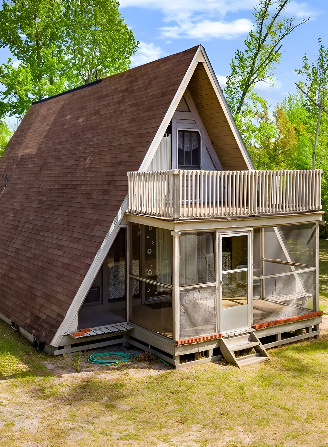 15. Tiny A-Frame With a Sweet Upper Balcony
