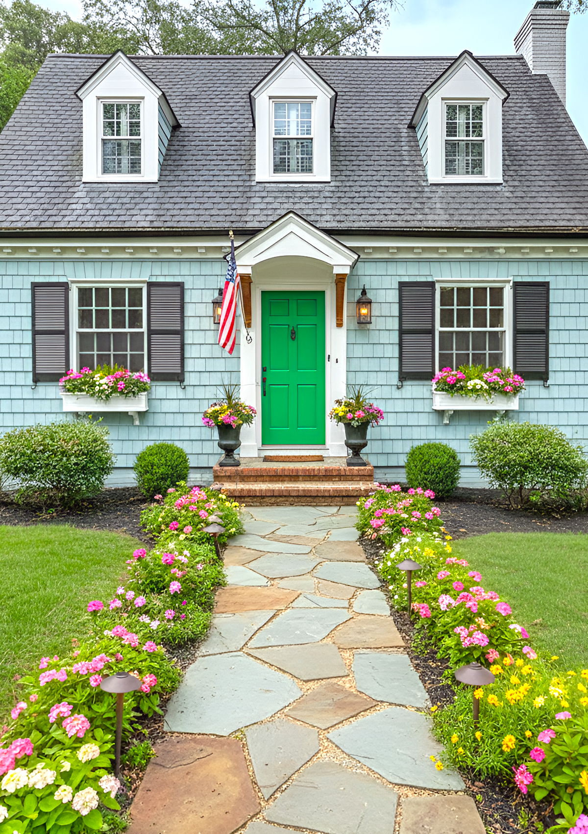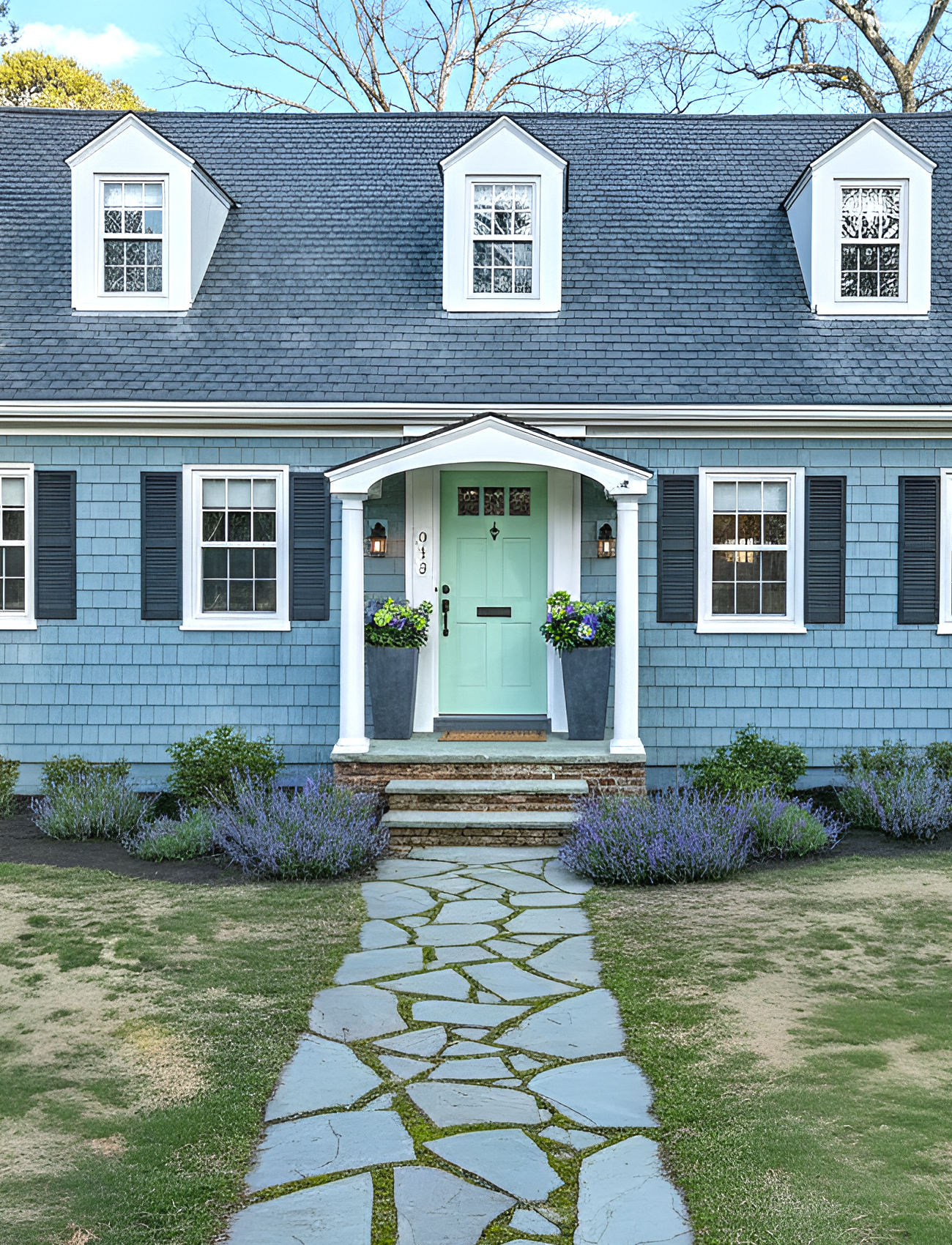 For a Cape Cod house that feels gentle and garden-friendly, soft green is a lovely pick.