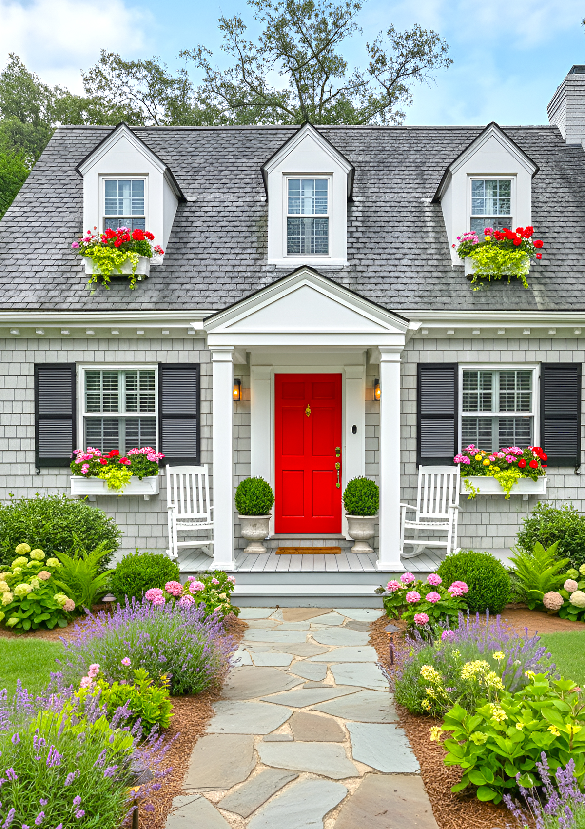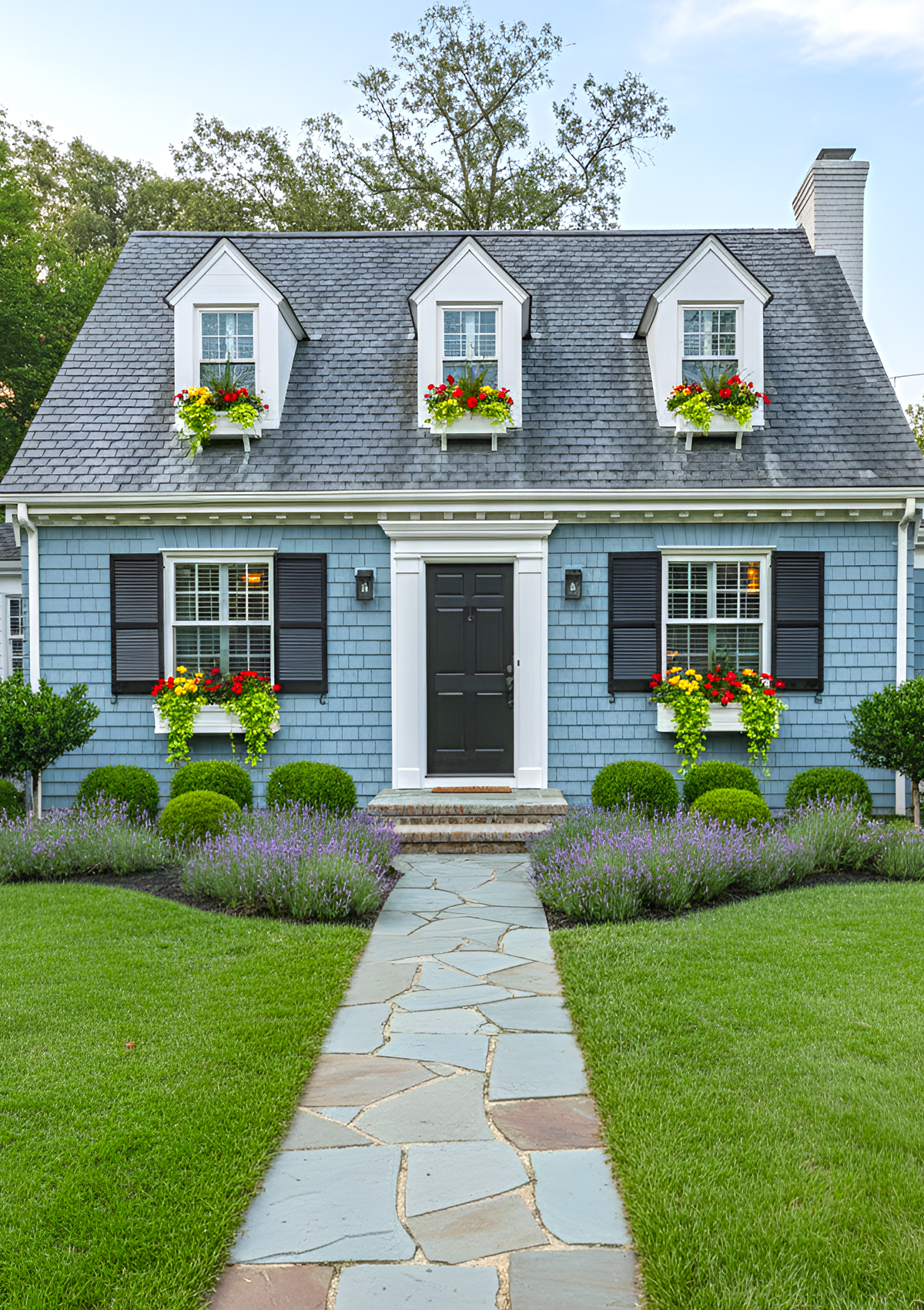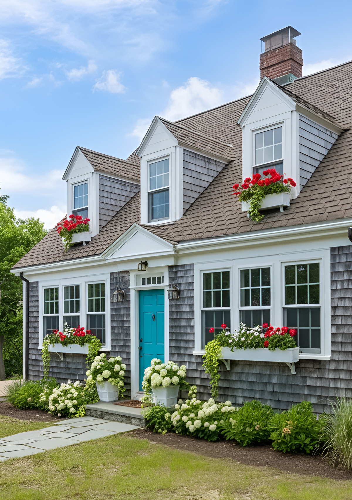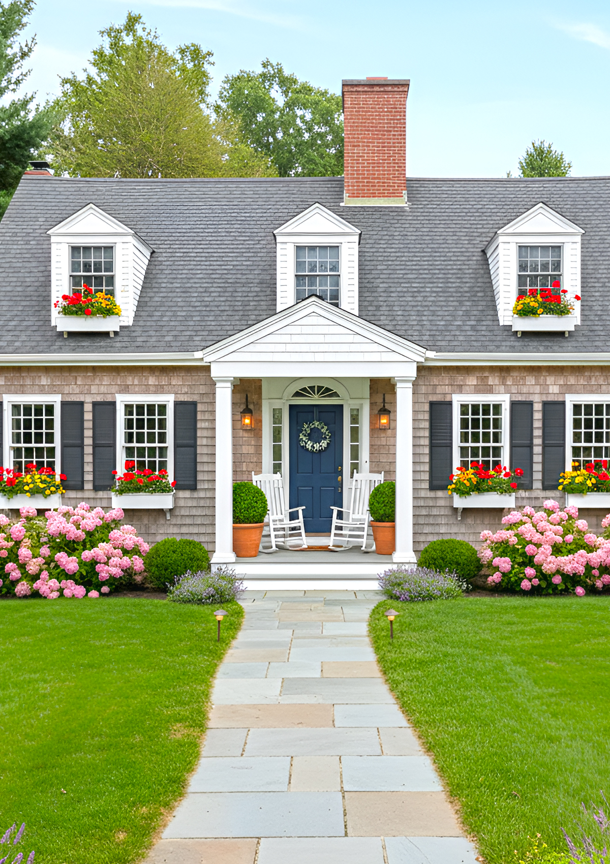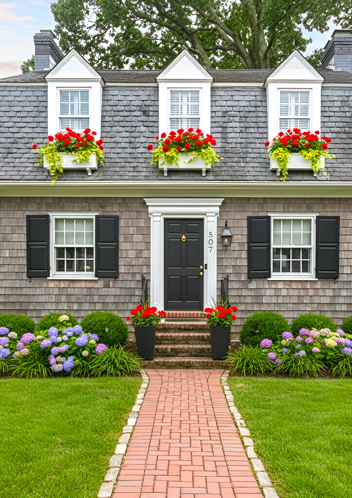On a Cape Cod home, window boxes feel right at home. They soften the architecture and make the whole facade feel more personal. Even if the house is simple, flowers under the windows bring life, color, and a sweet cottage touch.
