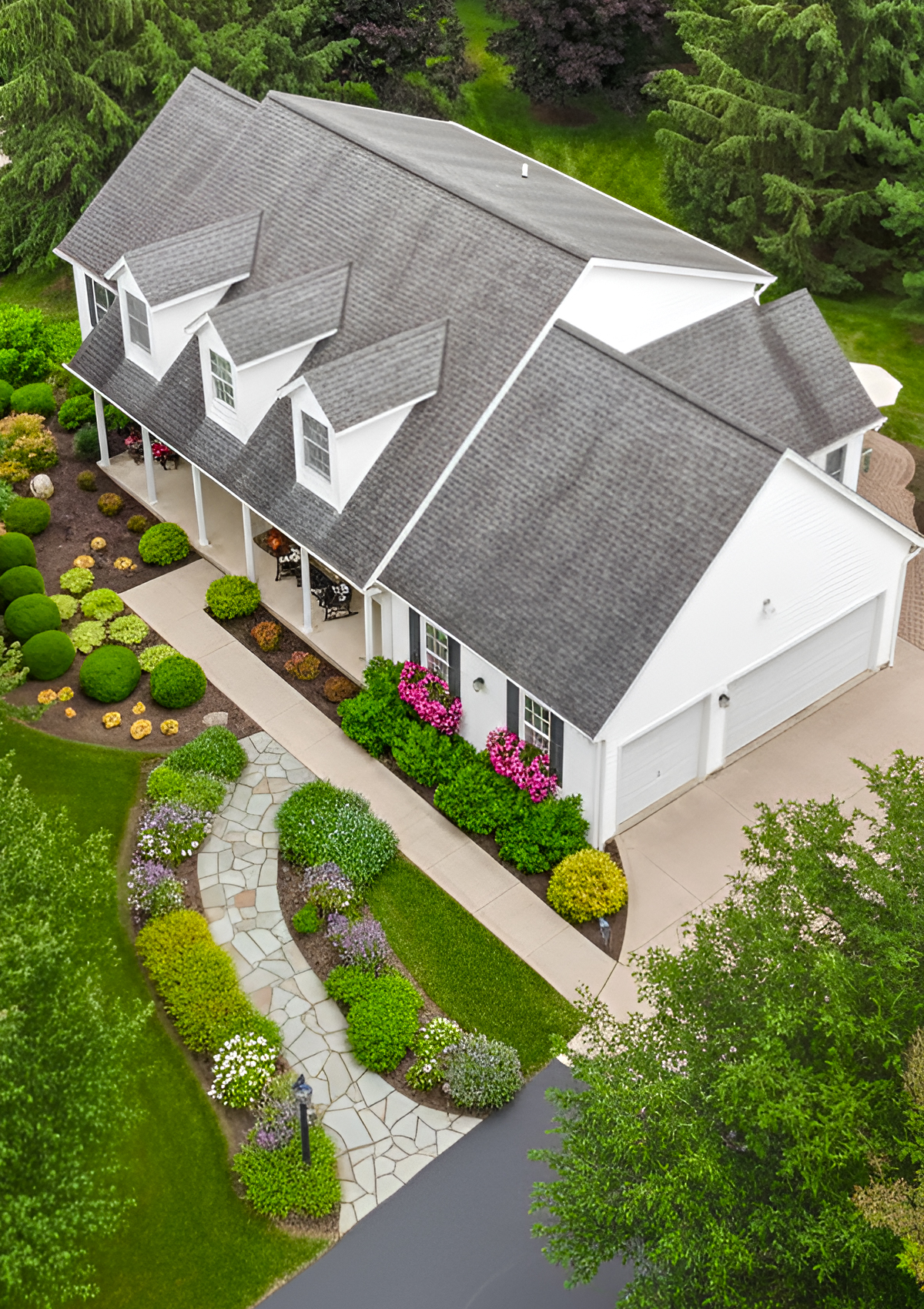 Keep the planting lower near windows and taller near blank wall sections or corners. That way, the landscaping frames the home instead of hiding it.