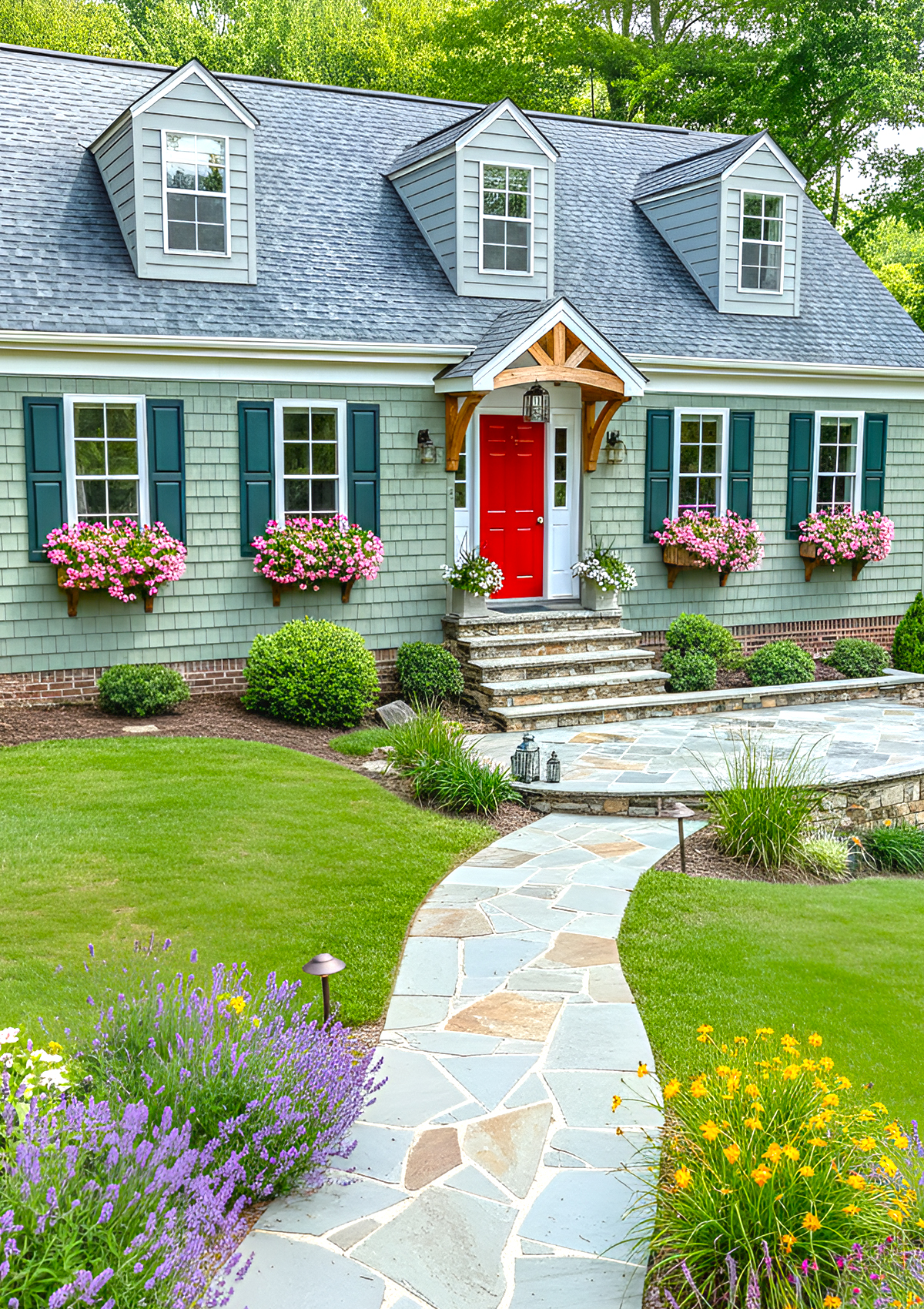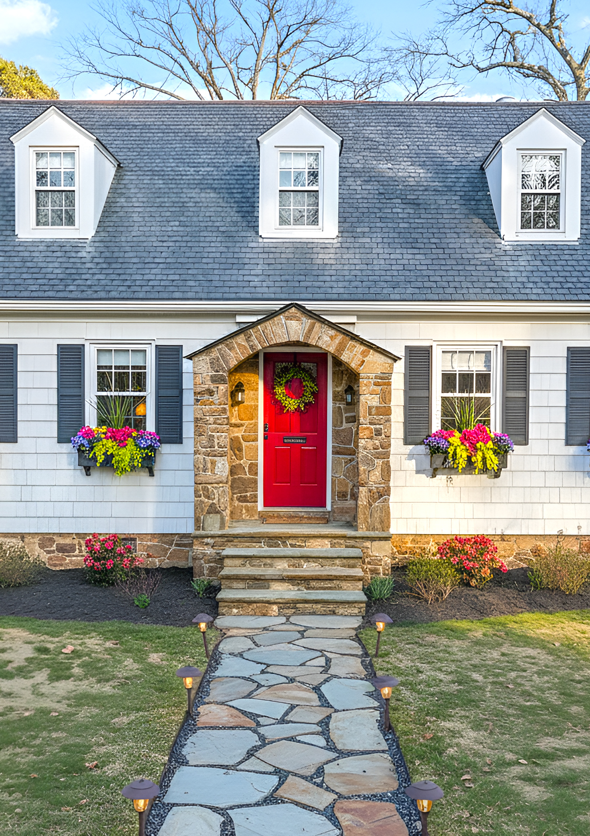 A front walk sets the tone before anyone reaches the door. Brick feels traditional and warm. Natural stone feels timeless and a little more rustic. Both work beautifully with Cape Cod homes because they add texture and make the entry feel established.