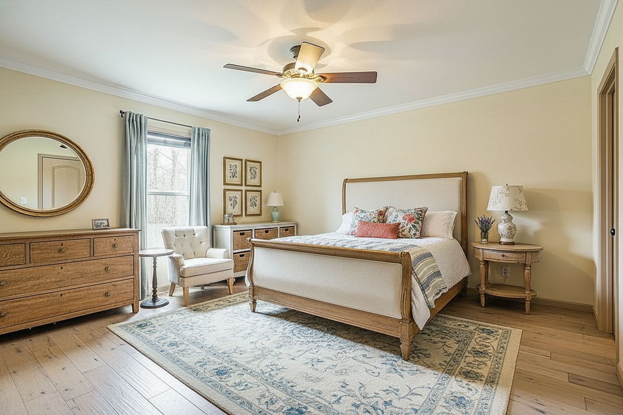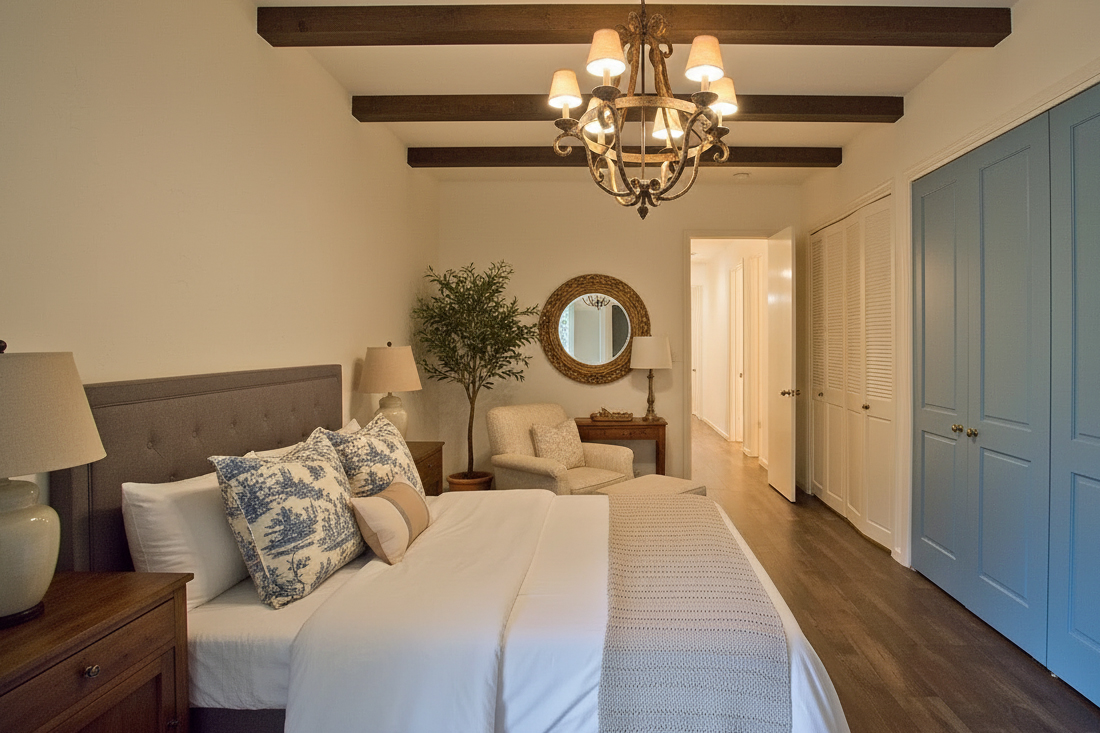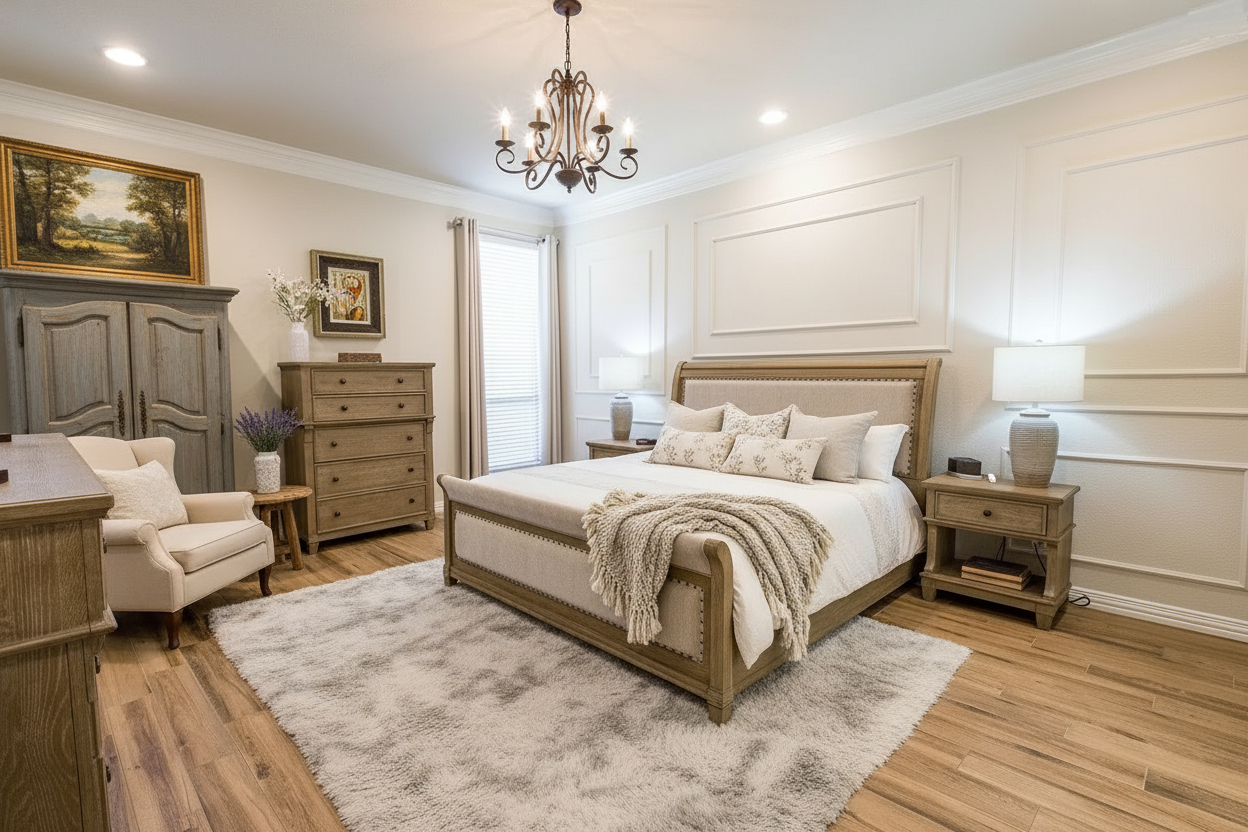 French country modern bedrooms work best when they feel balanced. Too much rustic wood, and the room can feel heavy. Too many elegant details, and it can start to feel formal. Too much modern minimalism, and you lose the charm.