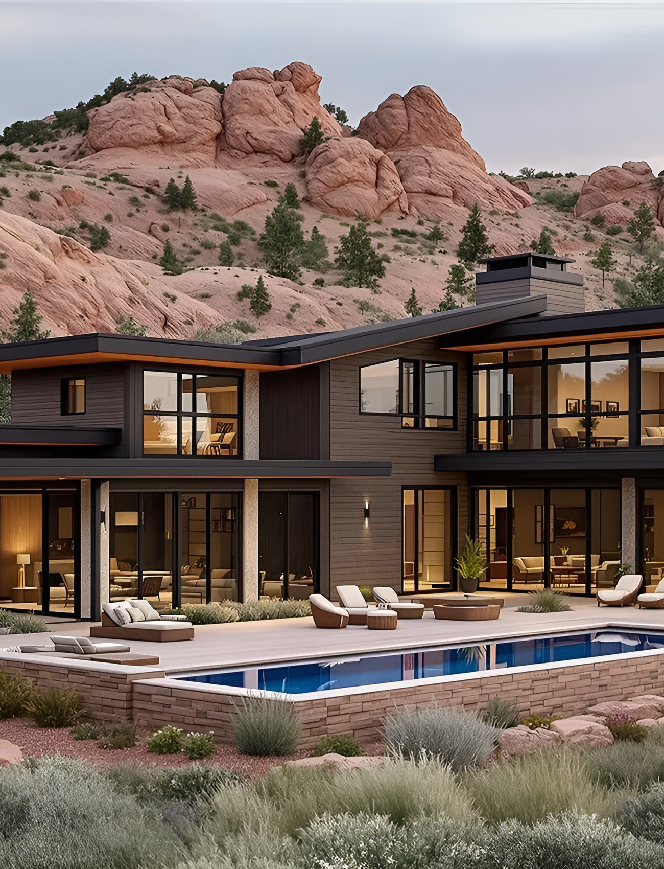 9. Red Rock Modern With Glass Walls and Desert-Mountain Drama