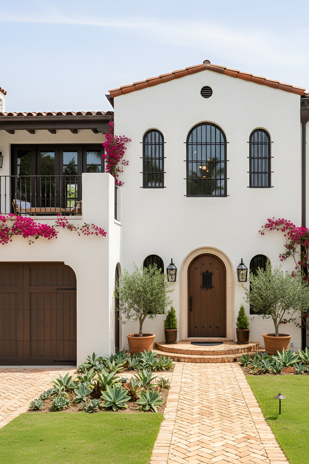 Garage doors take up a lot of visual space, especially on newer homes. In a modern Spanish exterior, they should feel like part of the architecture, not an afterthought.