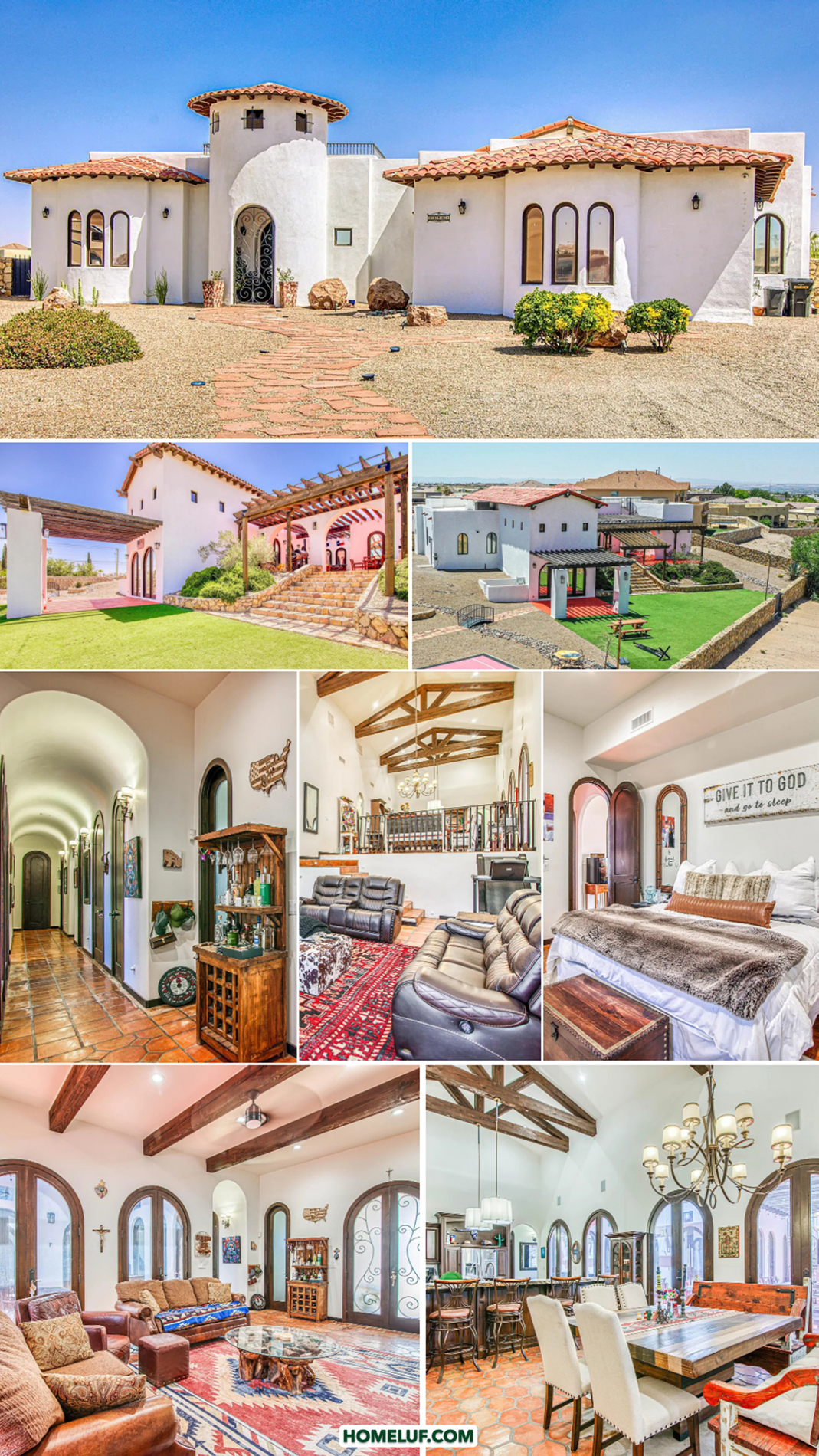 - Stucco and tile exterior