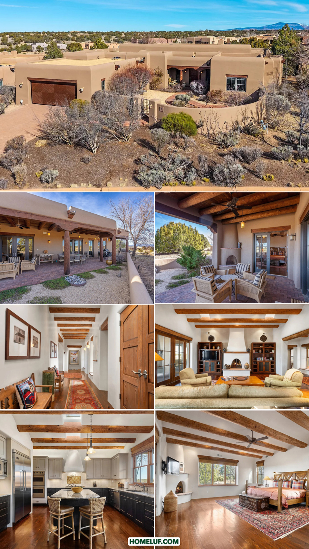 These homes often have thick walls, rounded edges, and warm desert colors. The roof may be flat or low. Exposed wood beams add charm and texture.