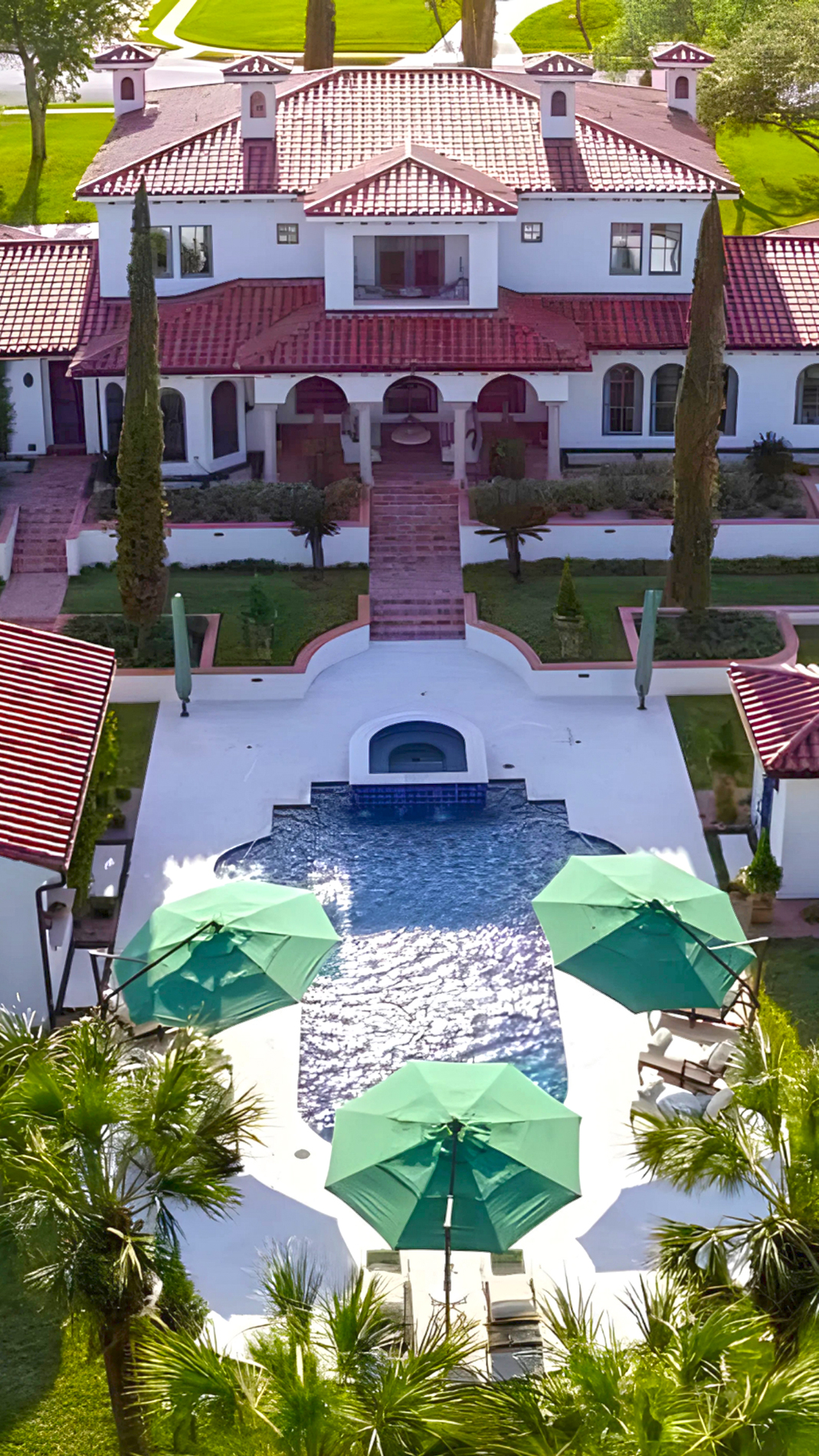 - Palm or olive trees nearby
