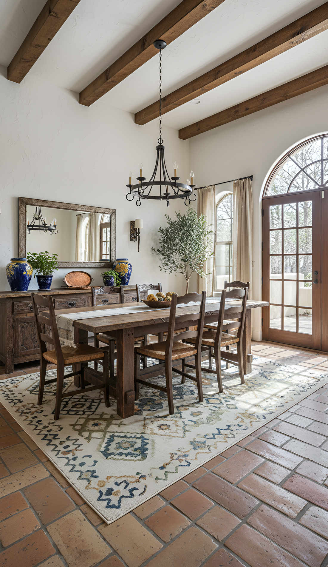 You also do not need to use every idea at once. Even a few strong choices can make a big impact. A wood table, iron chandelier, plaster walls, and one beautiful tiled detail may be all you need.