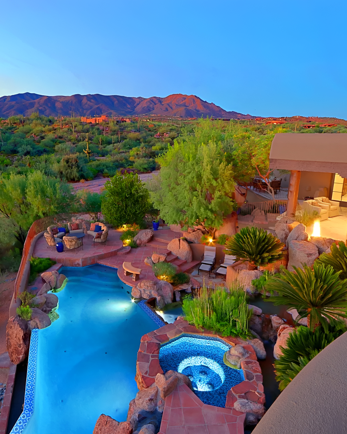 1. Sunset Canyon Pool With a Jewel-Box Spa