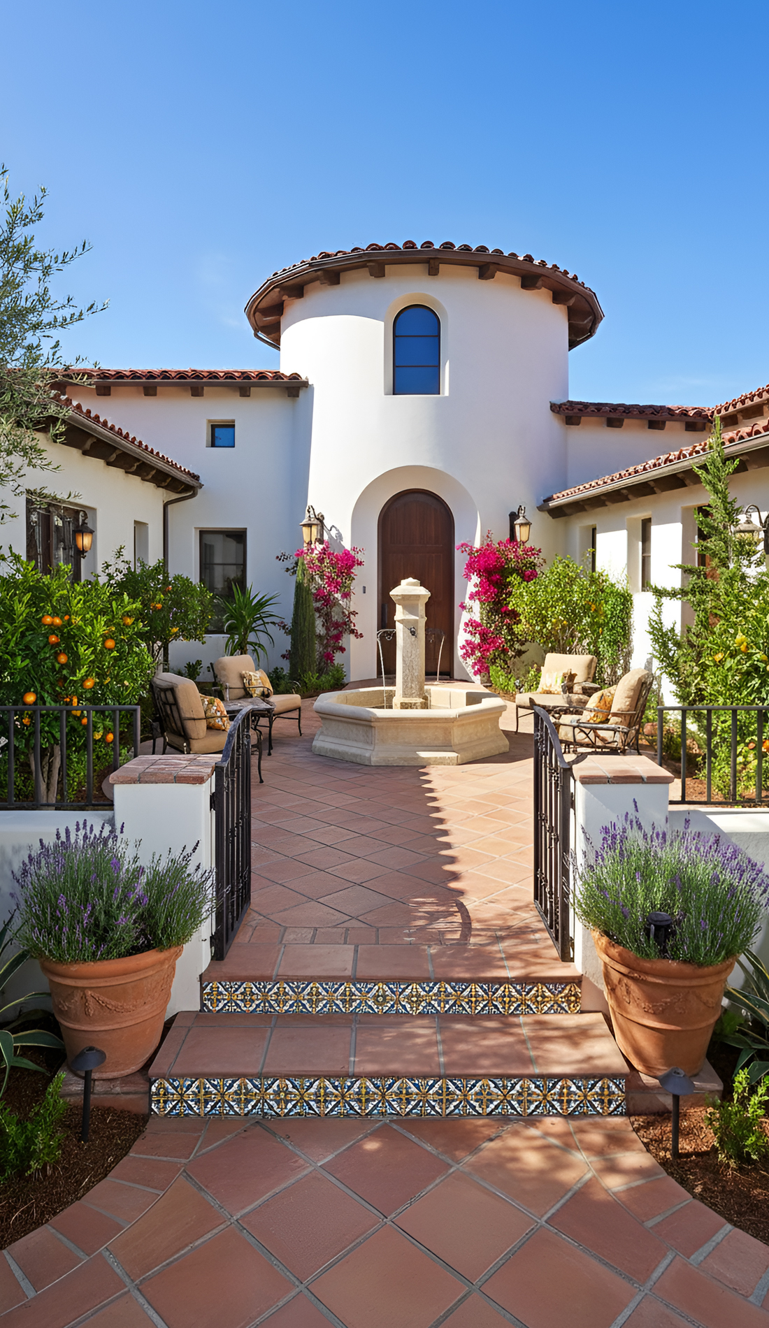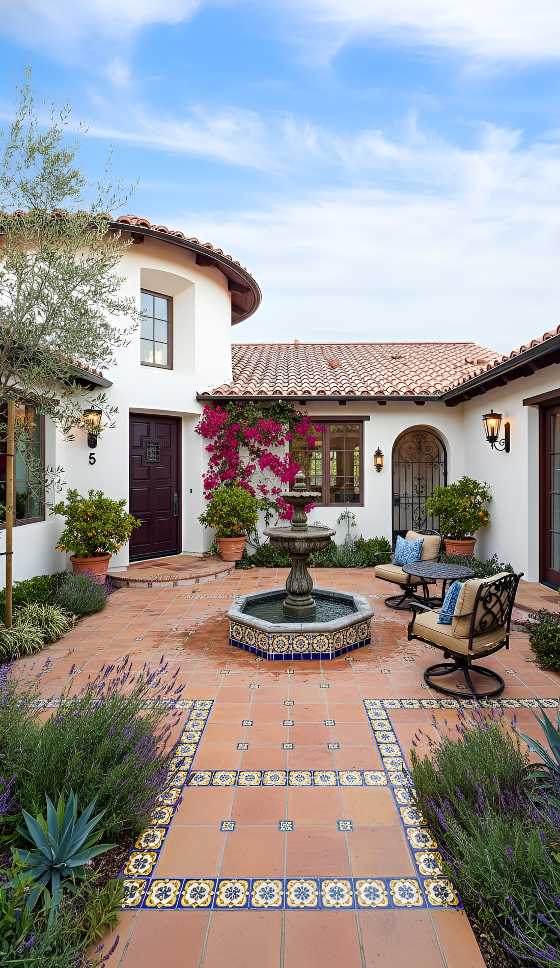 This approach works because Spanish design loves focal points. The entry should feel special, not plain.