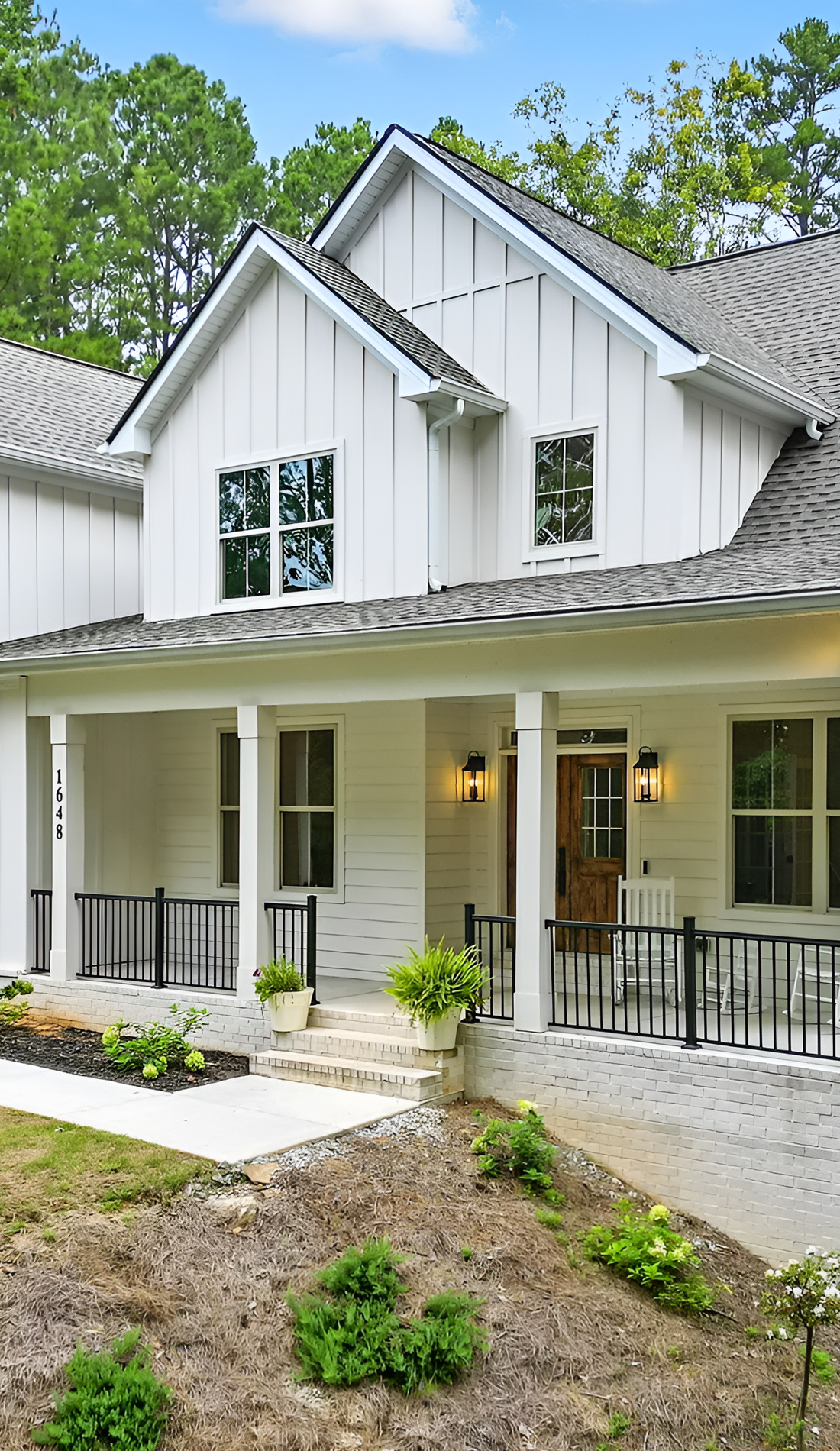 If there is one detail that instantly says farmhouse, it is board and batten siding. It brings clean vertical lines to the exterior and gives the home a little rhythm and structure.