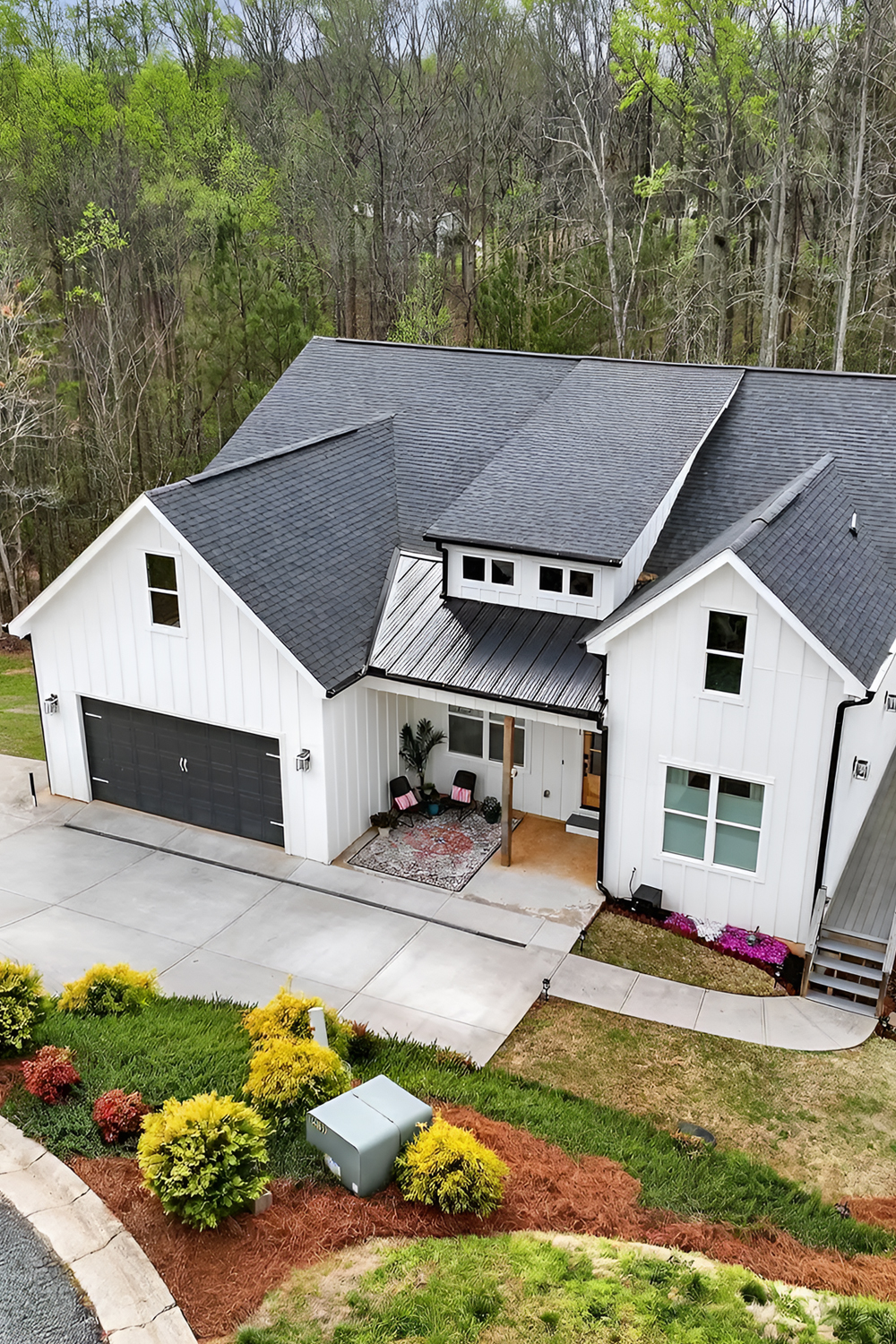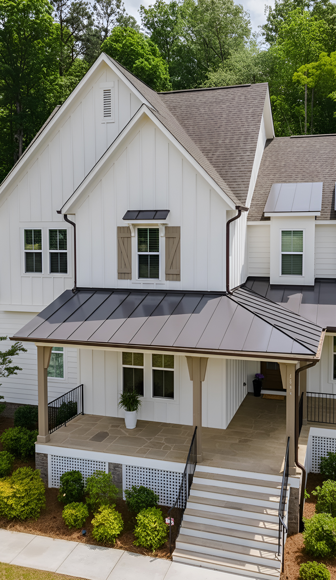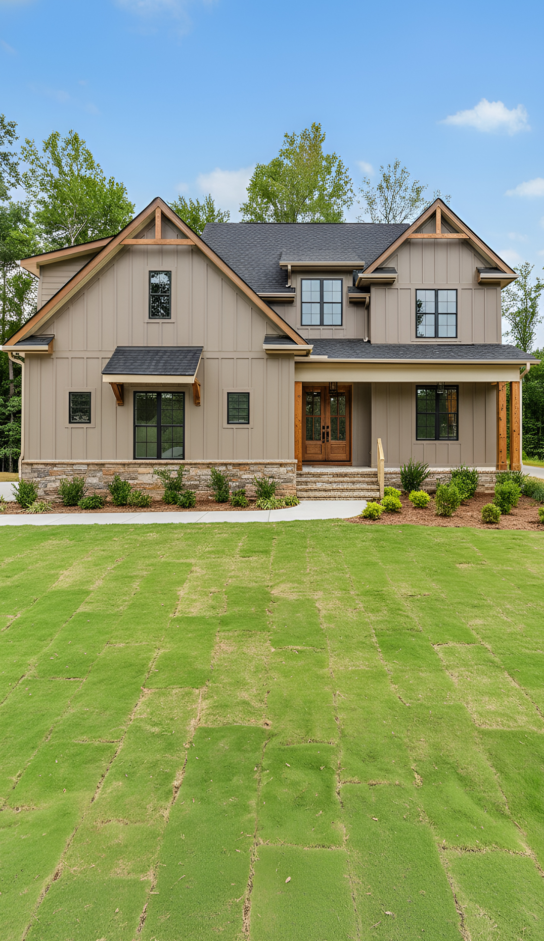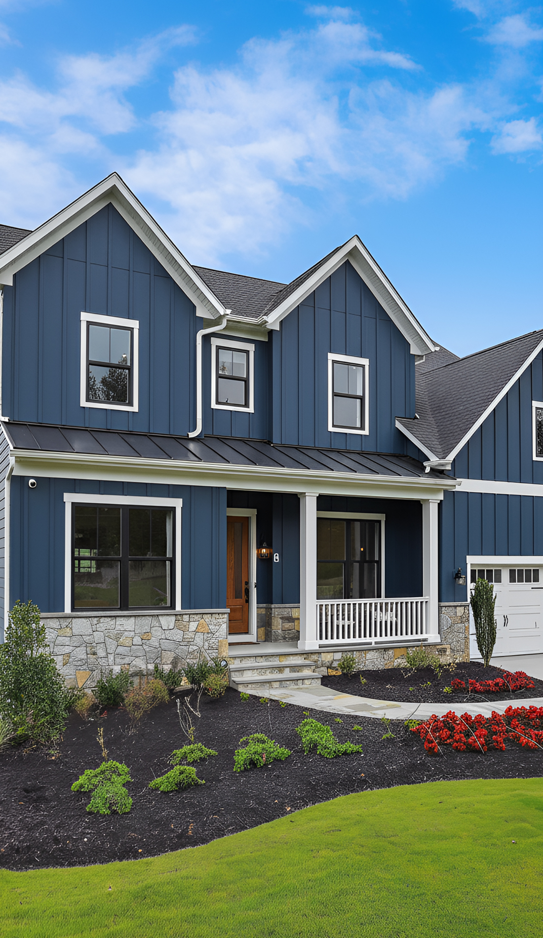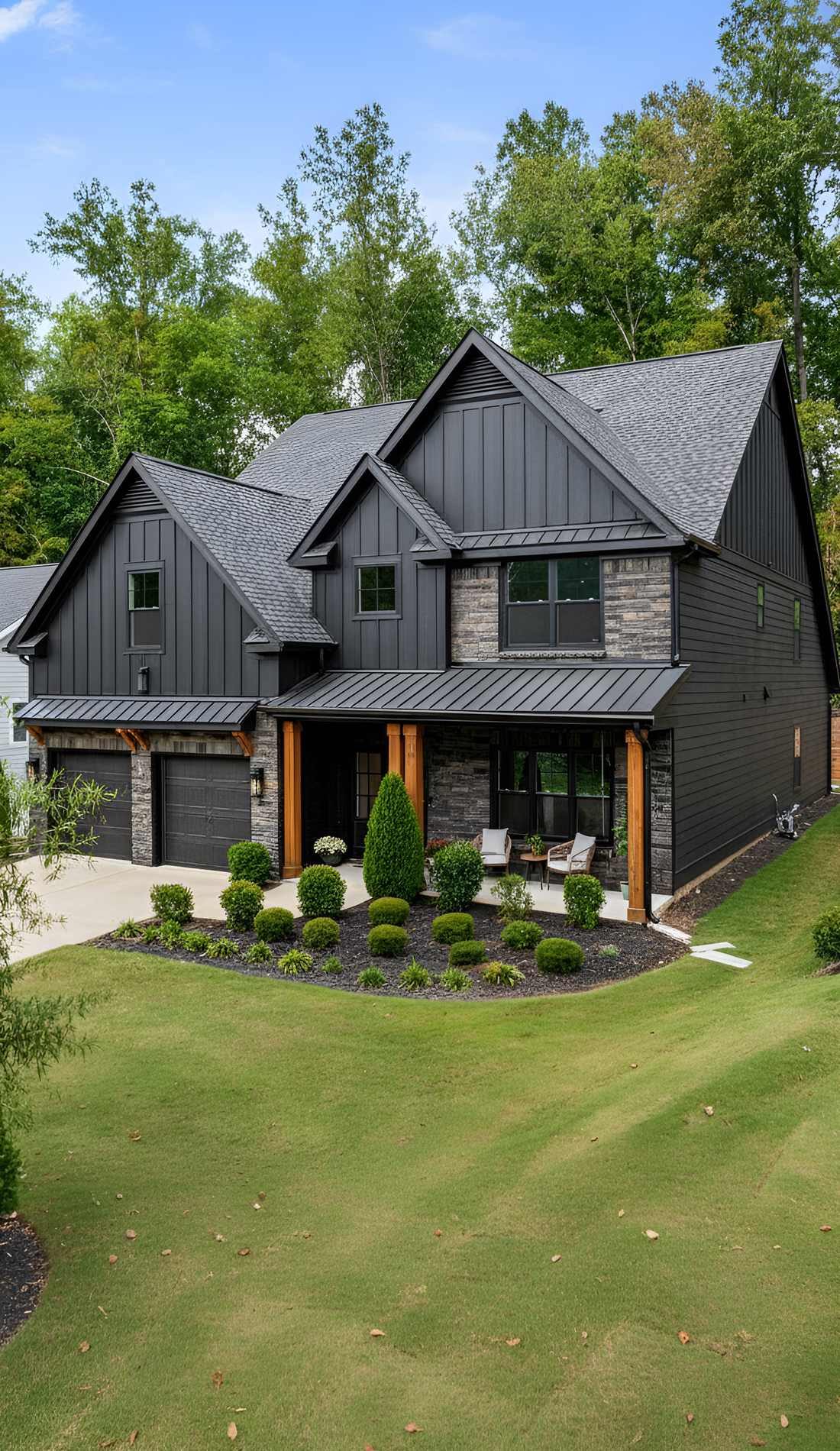 The mix feels current, balanced, and very curb-appeal friendly. It is especially effective on homes with board and batten siding, large windows, and simple, modern lines.