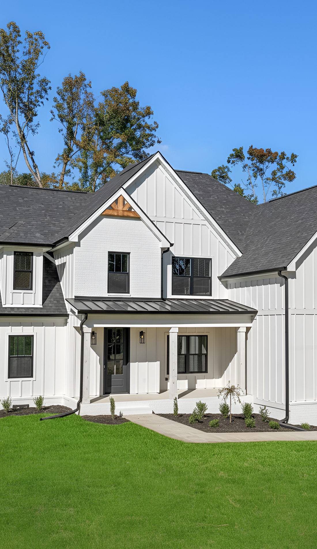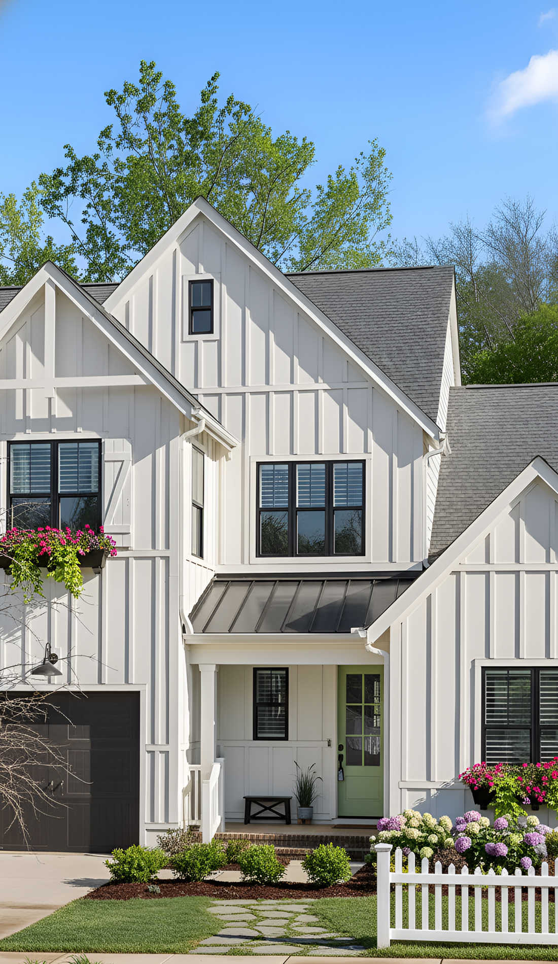 Next, think about the mood you want. Bright white and black feel crisp and classic. Sage and cream feel soft and country-inspired. Charcoal and wood feel modern and bold. Beige and ivory feel warm and traditional. The right color scheme should match both your home’s style and the feeling you want when people first see it.