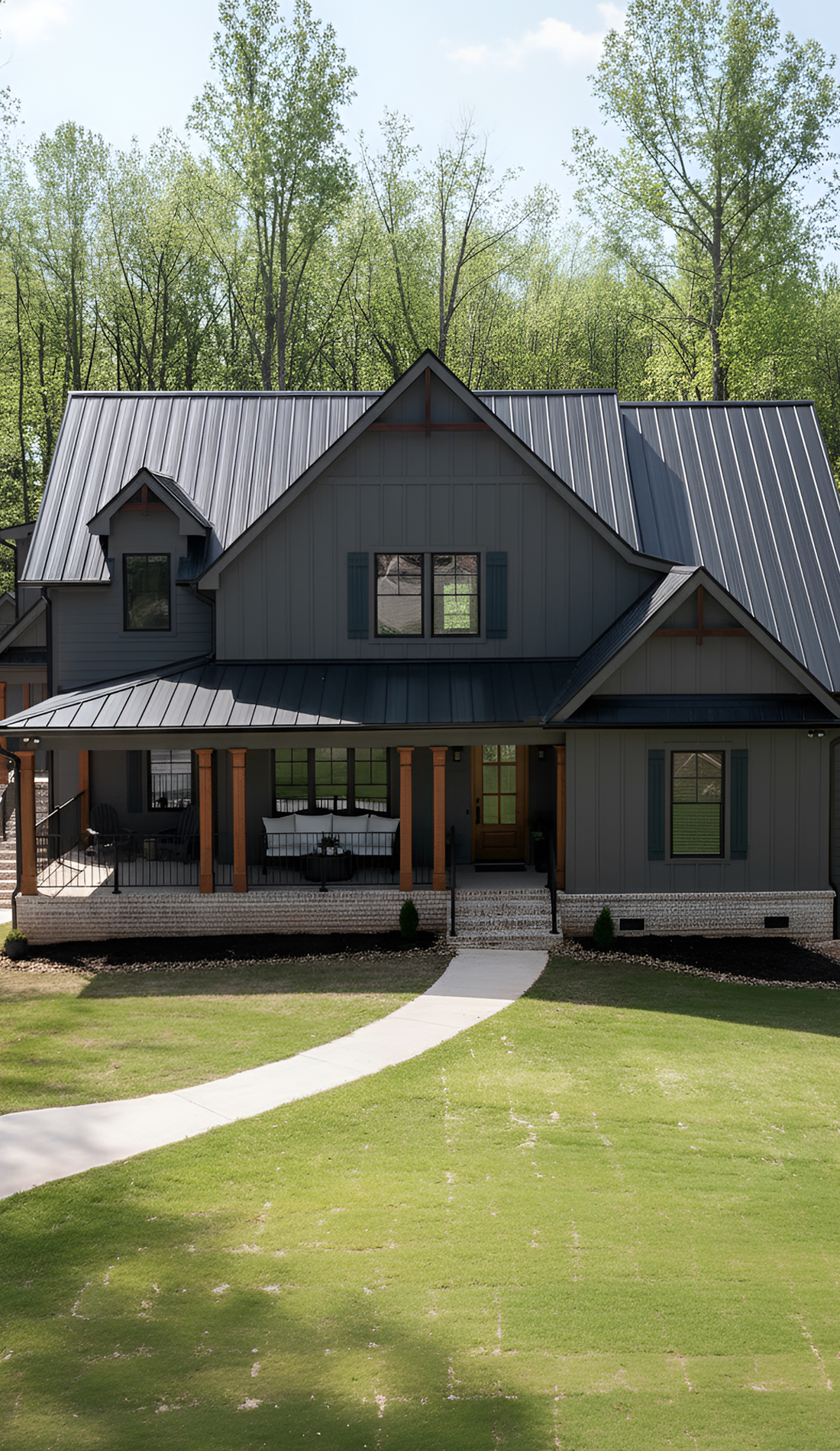 This palette works well in wooded areas, on homes with stone foundations, and on farmhouses with big porches and rustic details. It feels sturdy, calm, and rooted in the landscape.