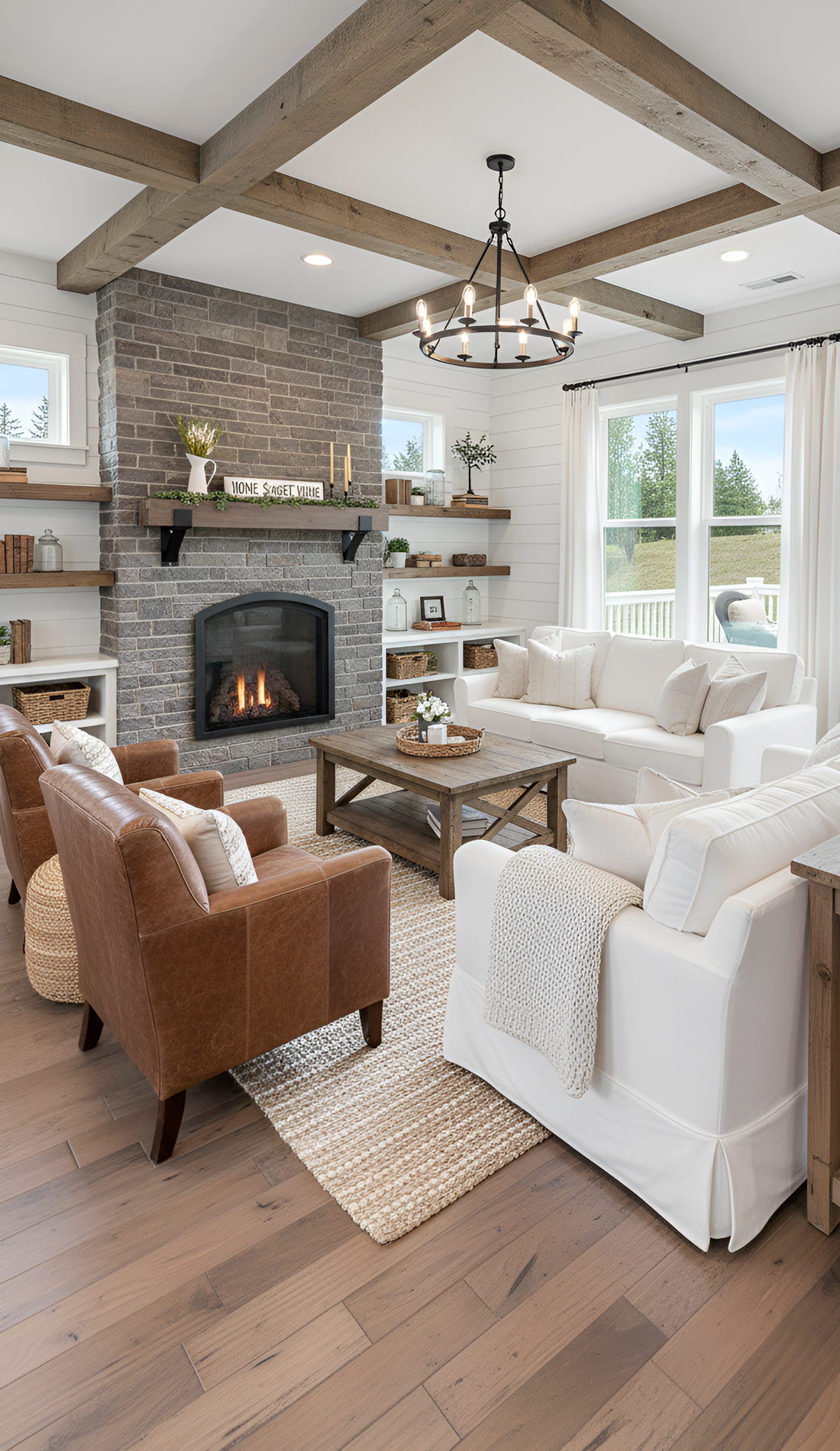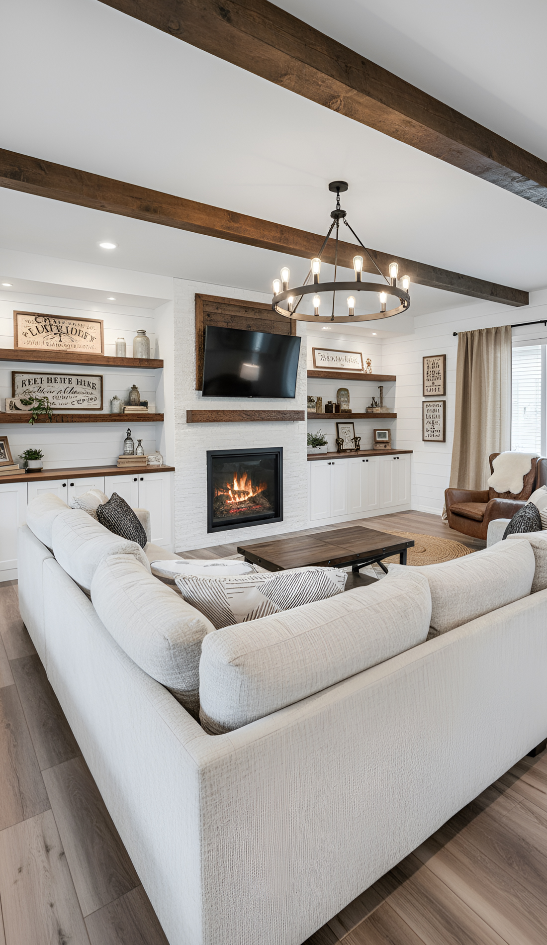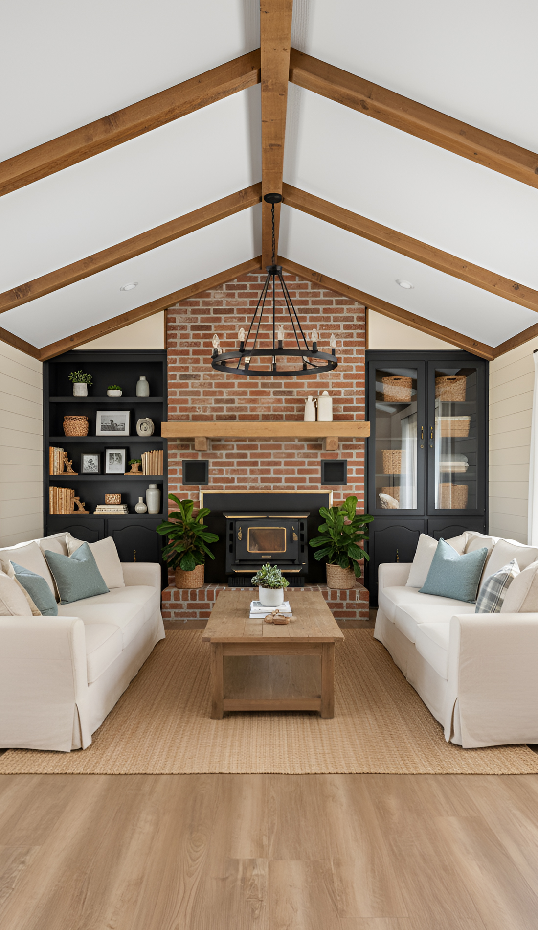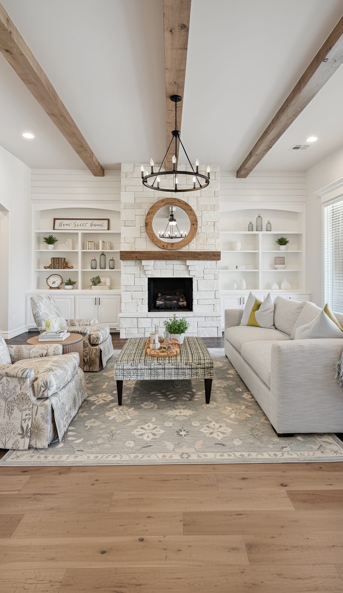 This works especially well in newer homes that need more character. It helps the living room feel rooted and custom, which fits farmhouse style perfectly.