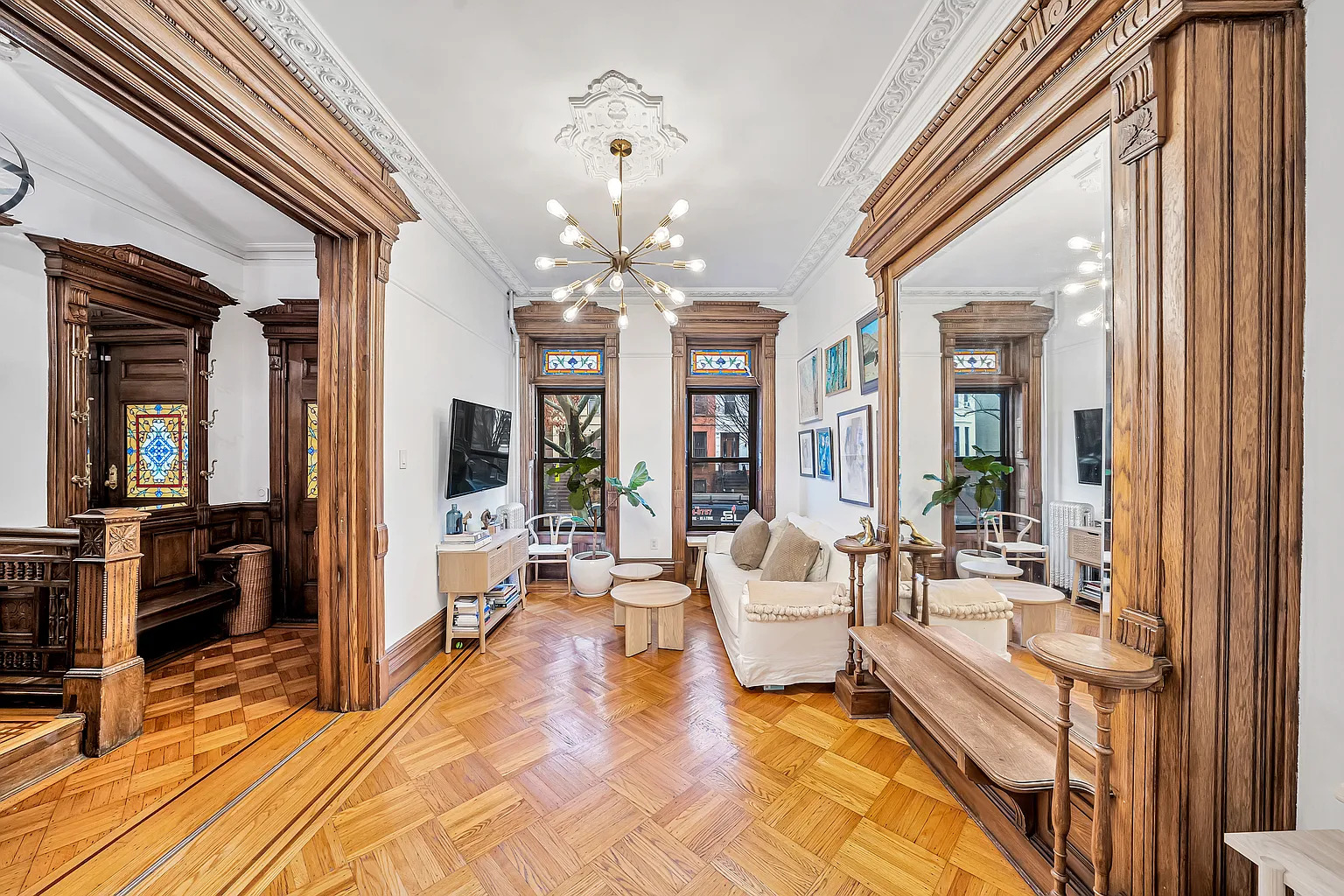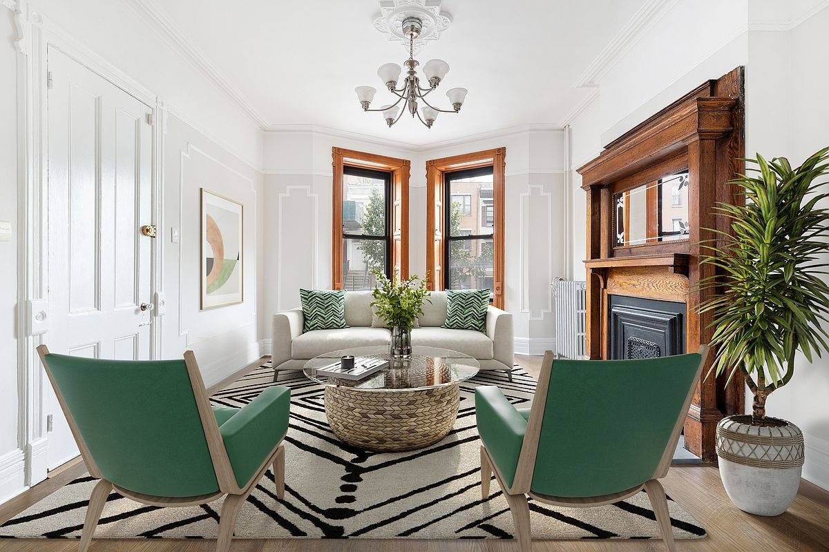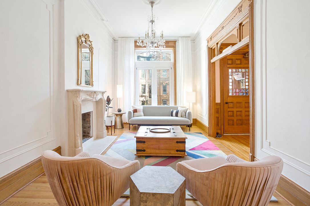 A true brownstone living room usually has a few signature cues.
