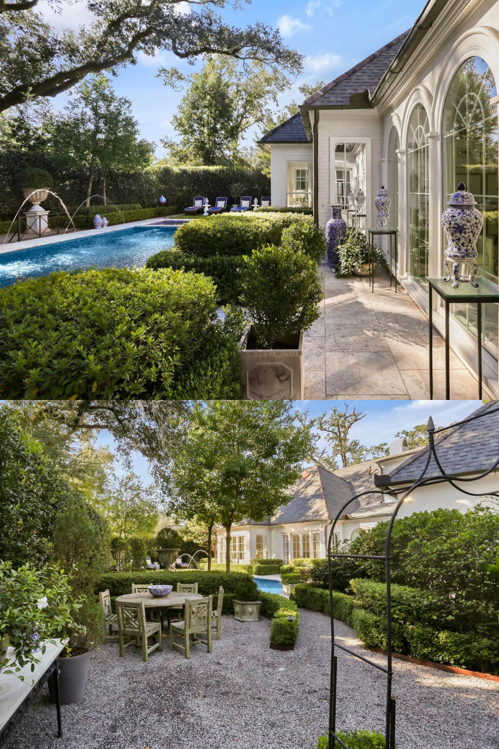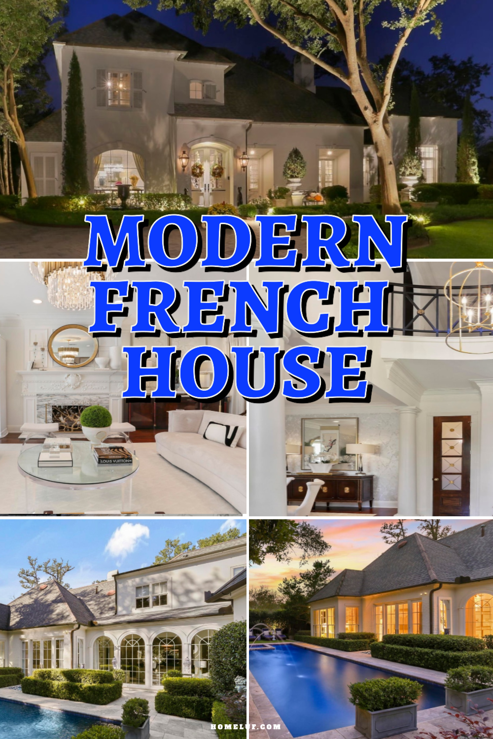 This home is a masterclass in blending classic French elegance with crisp, modern style. From the graceful architecture to the chic, light-filled interiors, every detail is carefully considered. The palette of white, cream, and soft gray keeps the space feeling open and breezy, while touches of gold and black add a bit of drama.