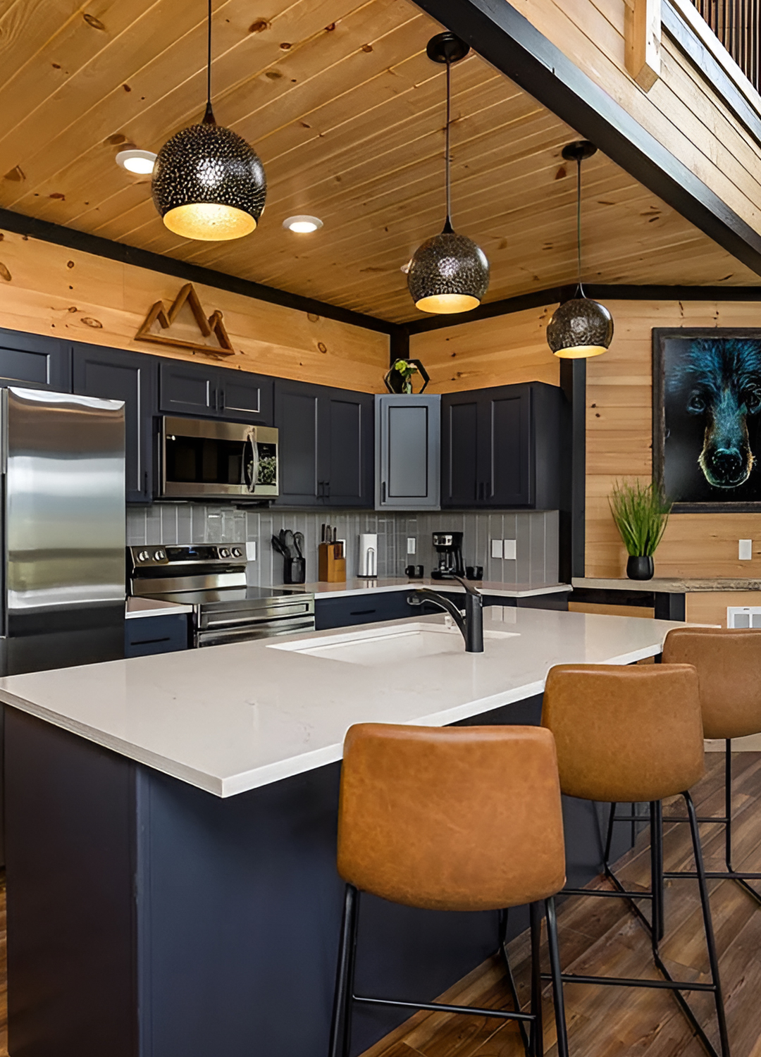 What makes this mountain cabin special is how it mixes the old and the new. You get the warmth of a classic log cabin, but also the style and comfort of a modern home. The space feels welcoming from the first step, with room for family, friends, and quiet moments alone.