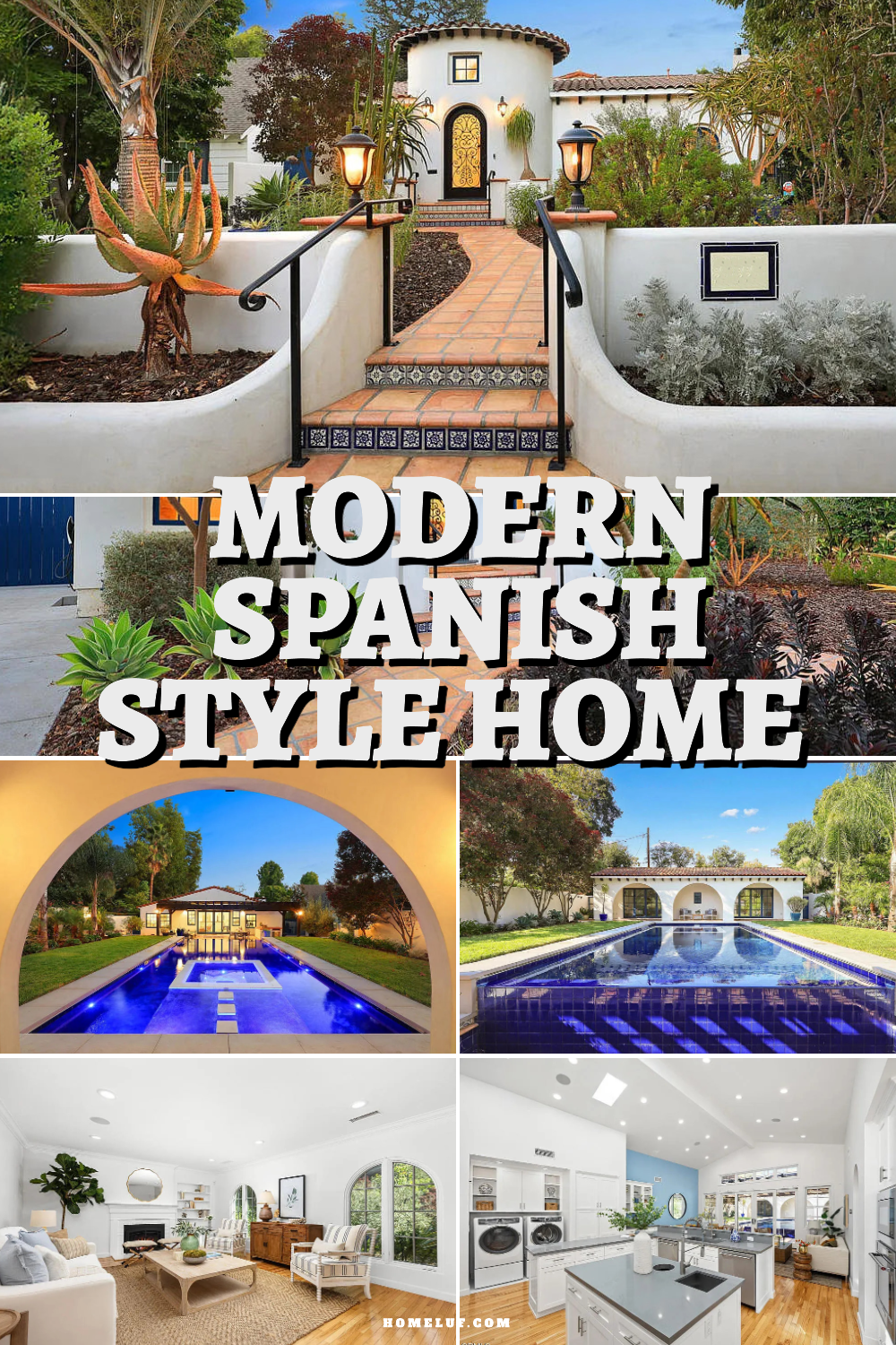 Can you picture walking up a pretty path with glowing lanterns and colorful tiles under your feet? Imagine a bright white house with a round tower and a door that seems to promise something special inside. Right away, you feel like this home is a happy place—a spot full of sunshine, easy living, and classic charm. Ready to take a peek inside? Let’s explore this gorgeous modern Spanish home, inside and out.