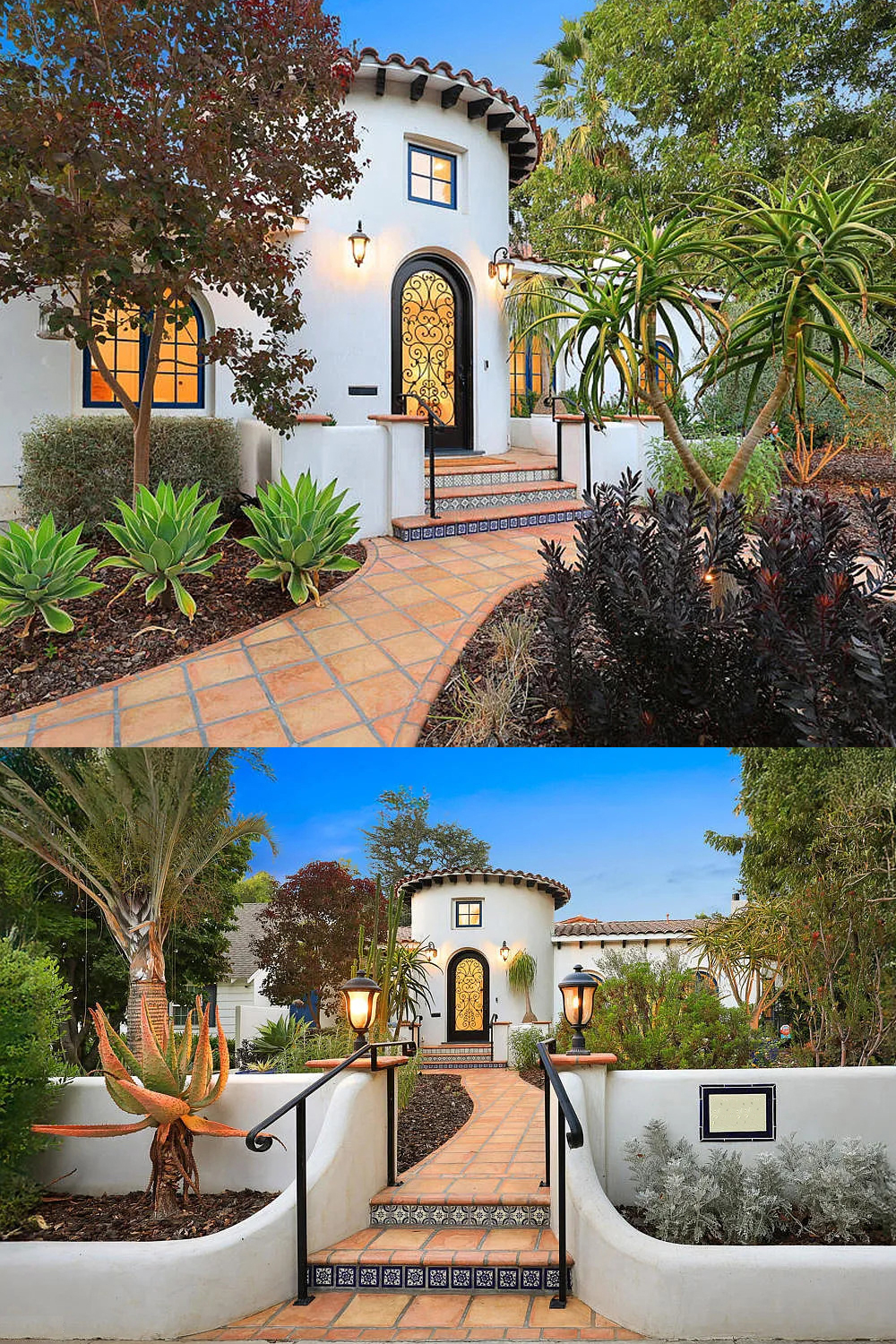 - Iron Accents: Lanterns, railings, and the front door add classic Spanish style.