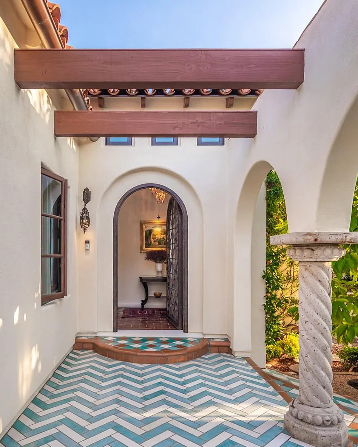 There’s something magical about an arched entryway. It hints at mystery and romance while giving the home a graceful flow. Spanish homes love these curves—around the front door, over windows, and even along porch columns. Sometimes, you’ll spot triple-arched facades or grand entryways that feel straight out of a storybook.