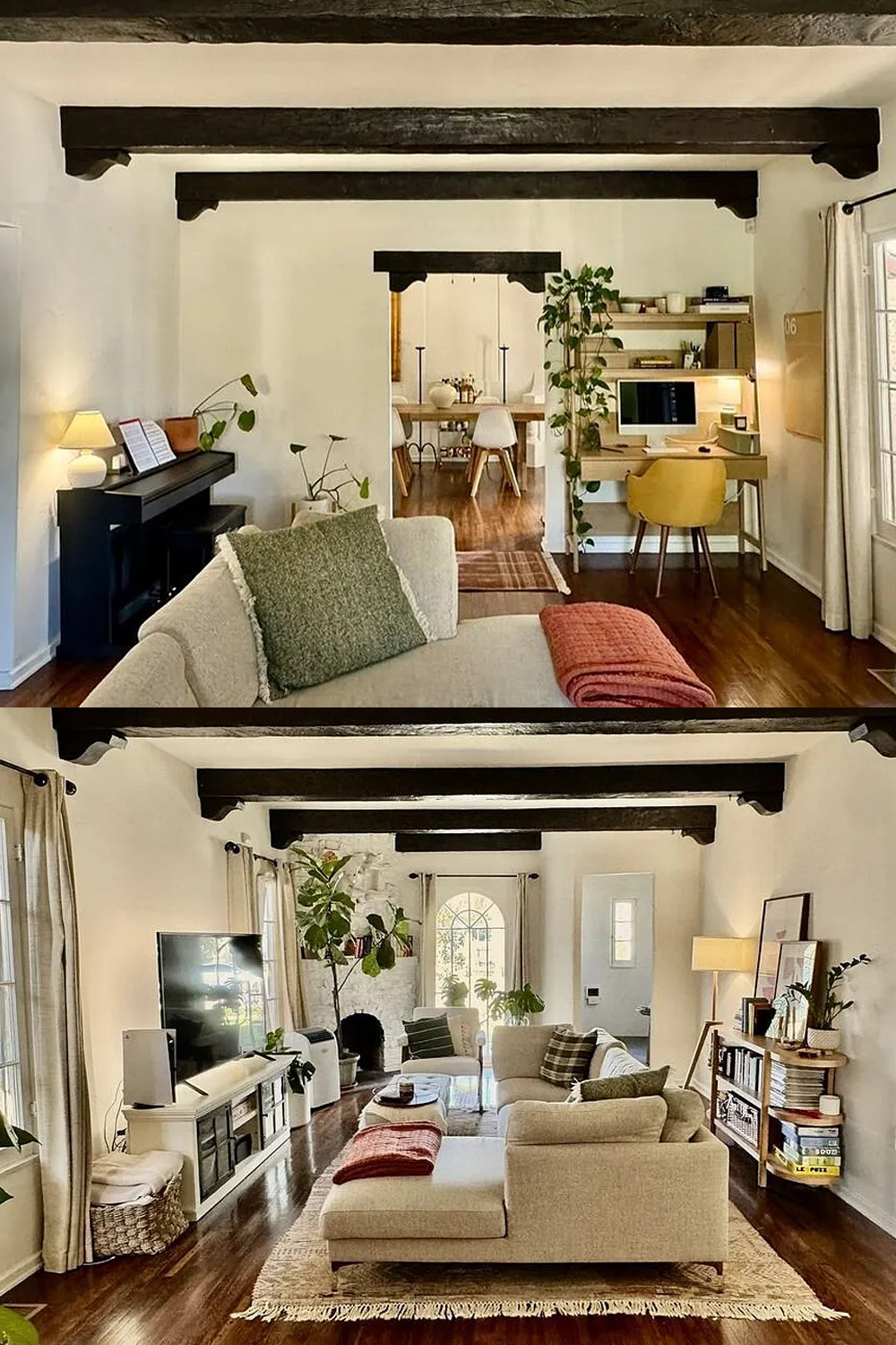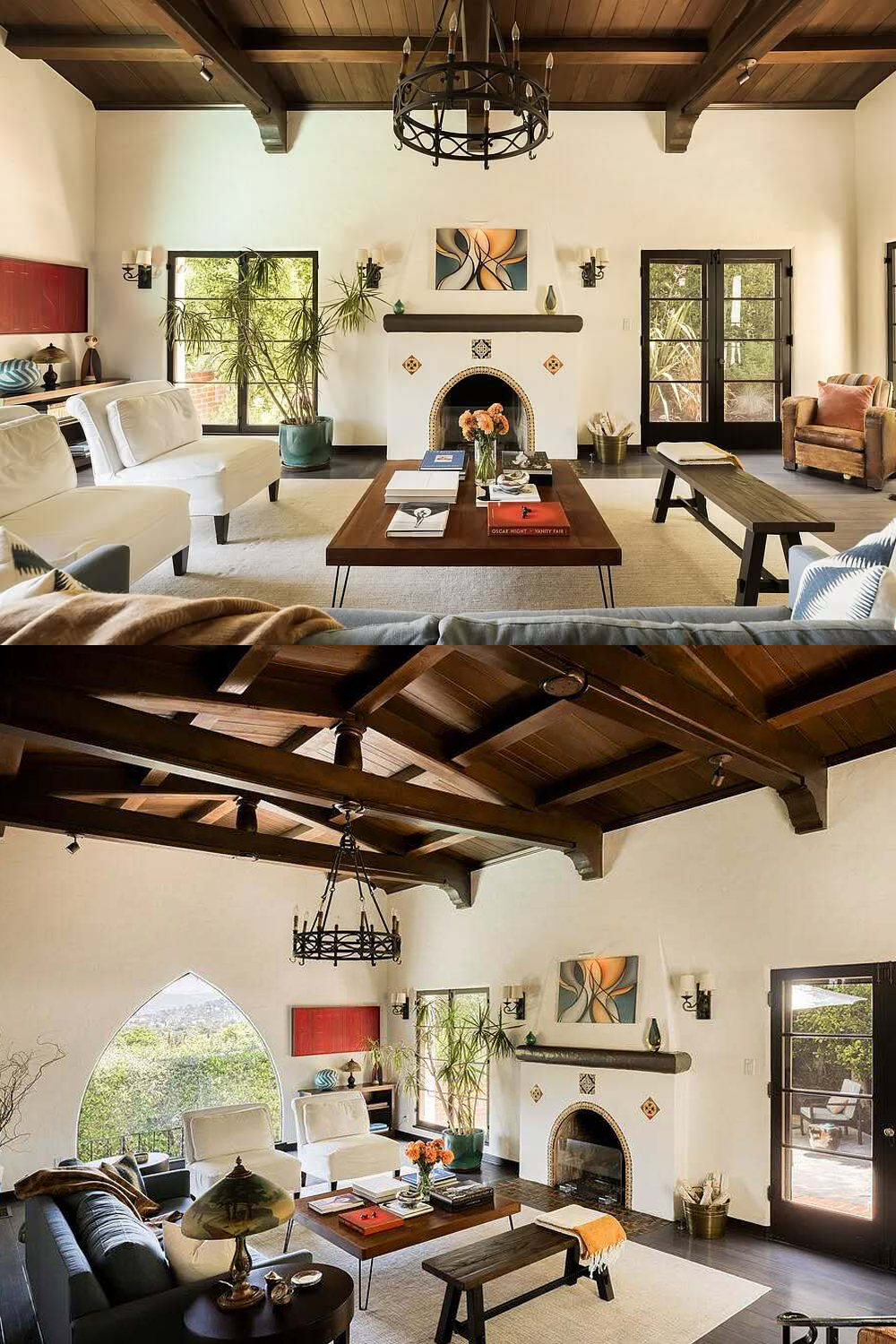 Spanish homes love a little drama overhead. Ceilings soar, often accented with chunky, exposed wood beams. Sometimes, these beams are dark and bold; sometimes, they’re pale and sun-washed. They draw the eye up, making even smaller rooms feel spacious and airy.