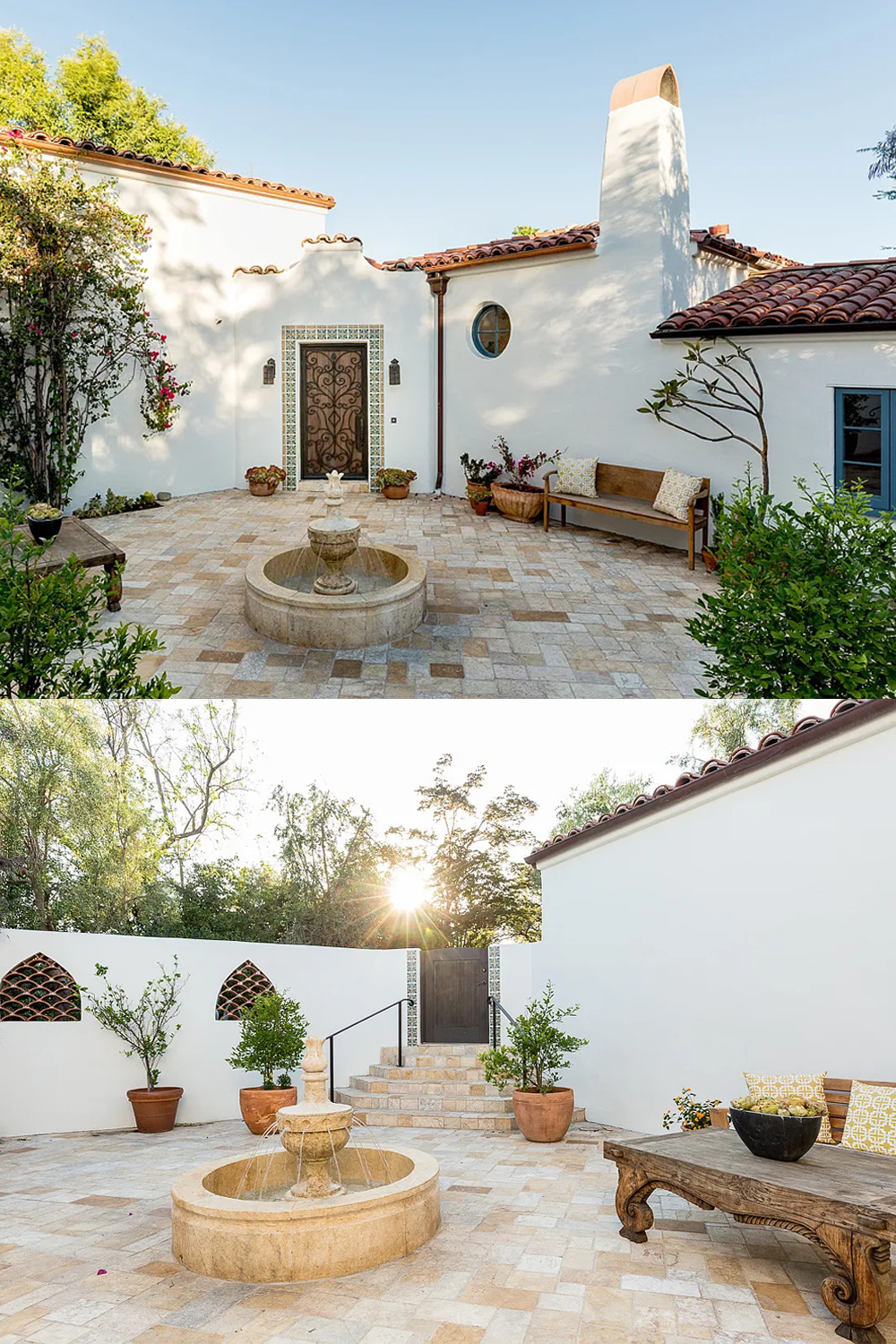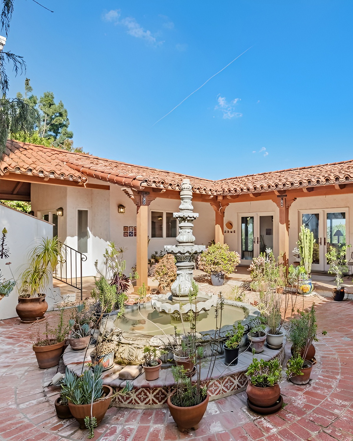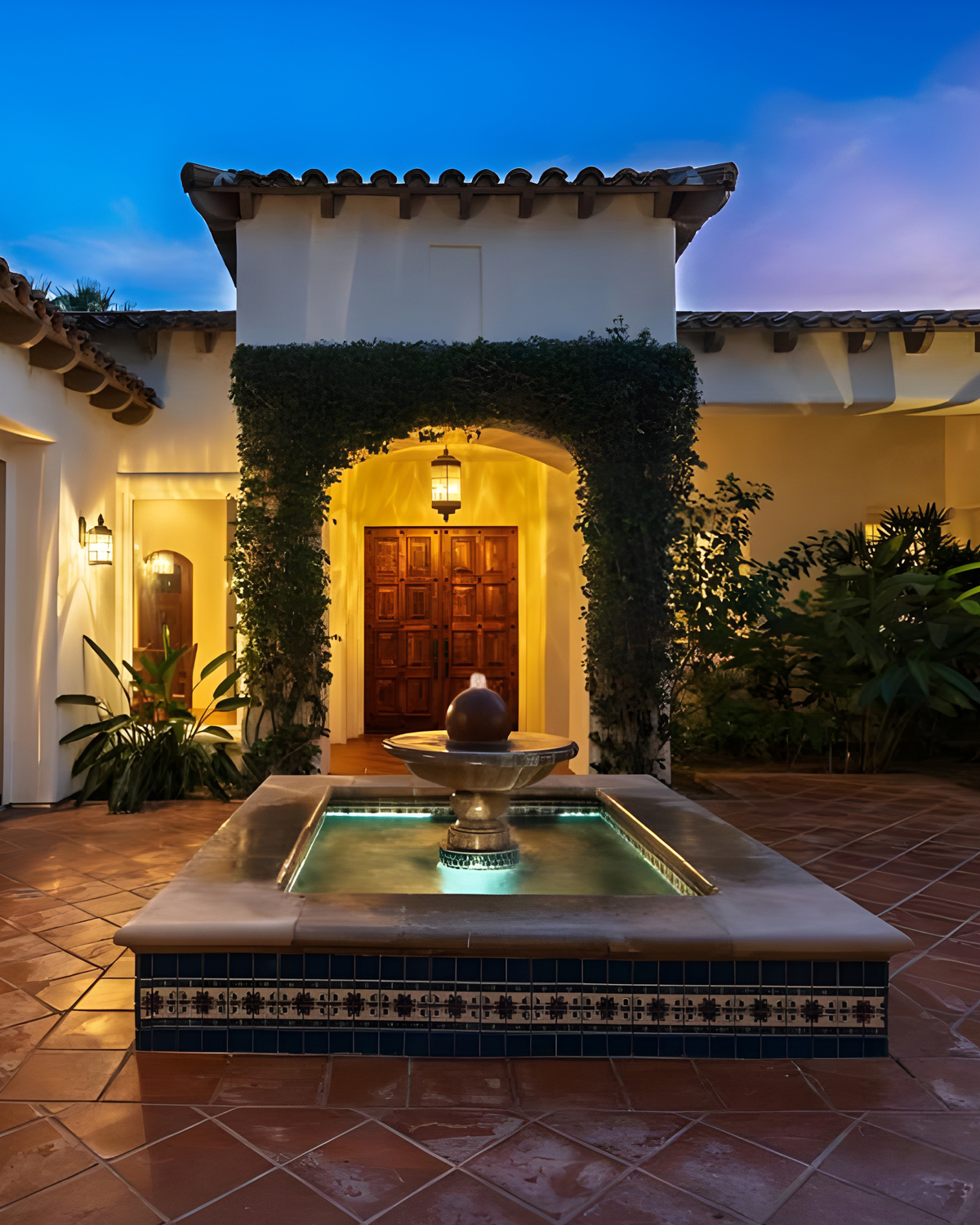 If you love outdoor living, you’ll adore the Spanish approach. Courtyards are the soul of these homes—private, breezy, and shaded. Picture a peaceful space with tiled floors, a bubbling fountain, maybe a few potted palms or citrus trees. These patios create a seamless connection between indoors and outdoors, perfect for morning coffee or evening gatherings under the stars.